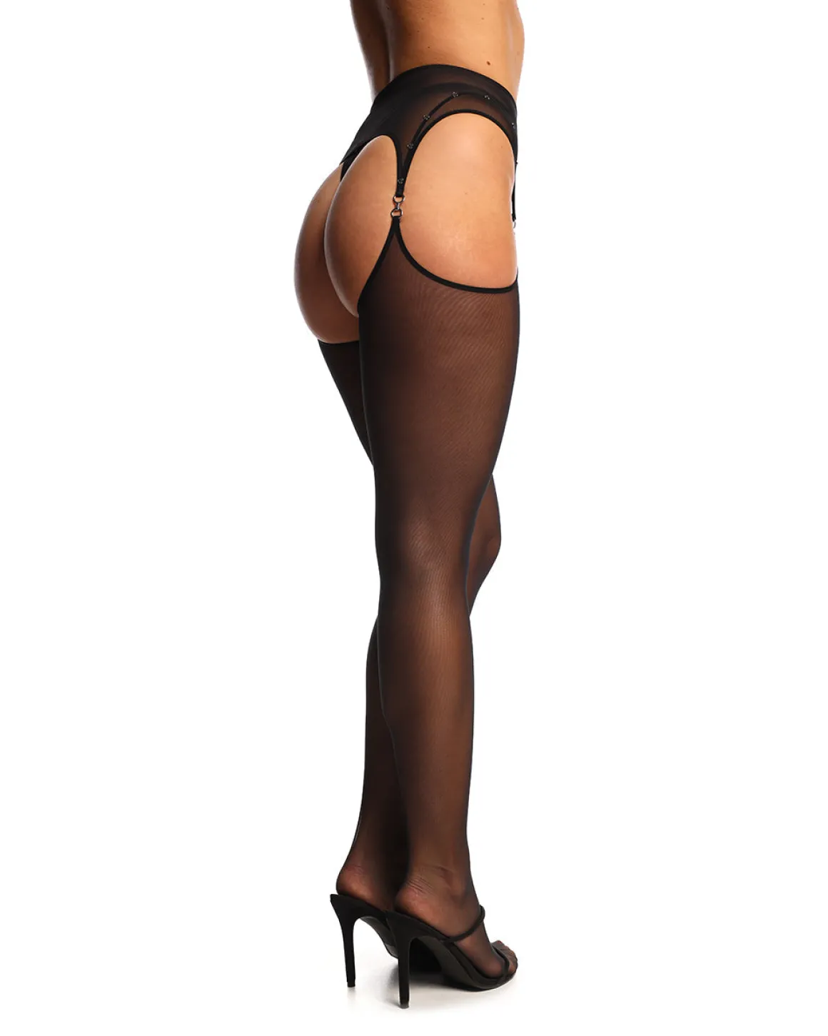 Ultra high classic sheer stockings with decorative front seams that visually elongate the legs.