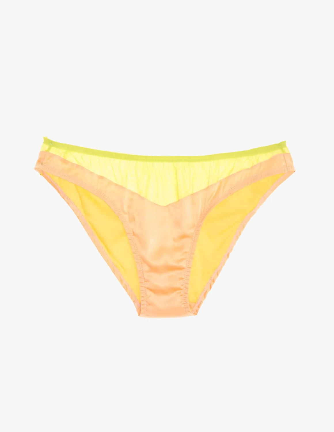 Best-selling silk charmeuse panty with silk chiffon upper yoke. Full seat coverage.