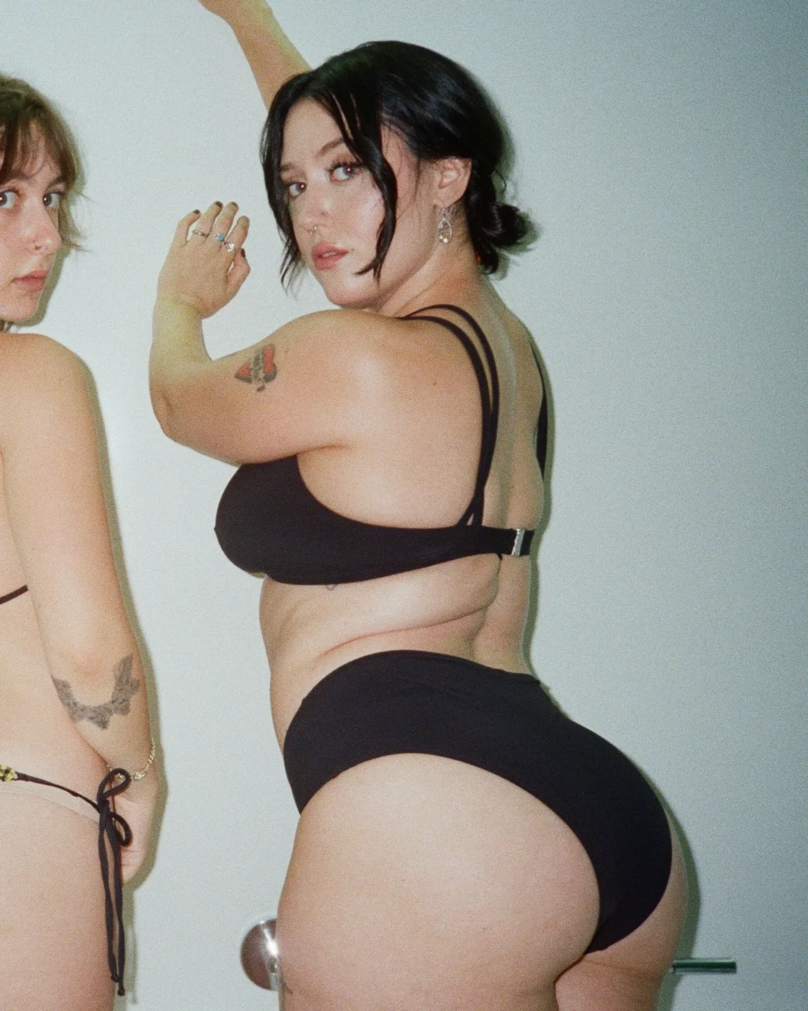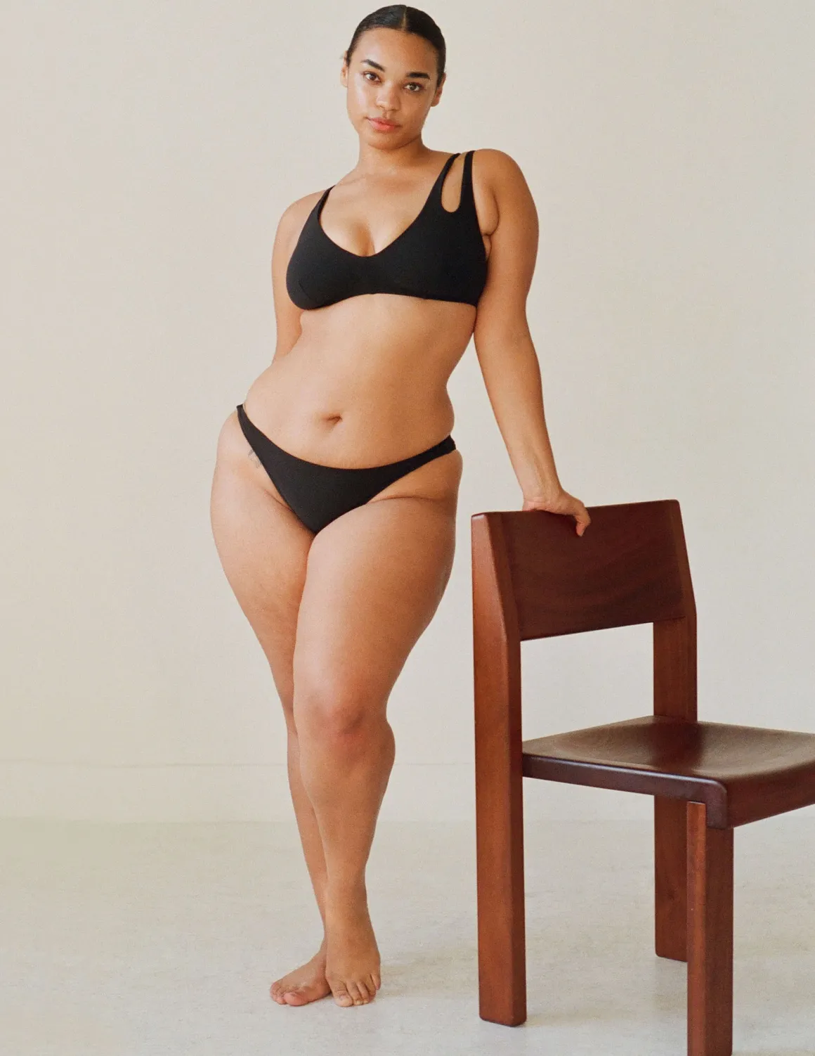 This best-selling style for our fuller cup customers is back in stock in black! A sleek bikini top with asymmetrical criss-cross strap detail. The left shoulder strap can be crossed in the front or back.
