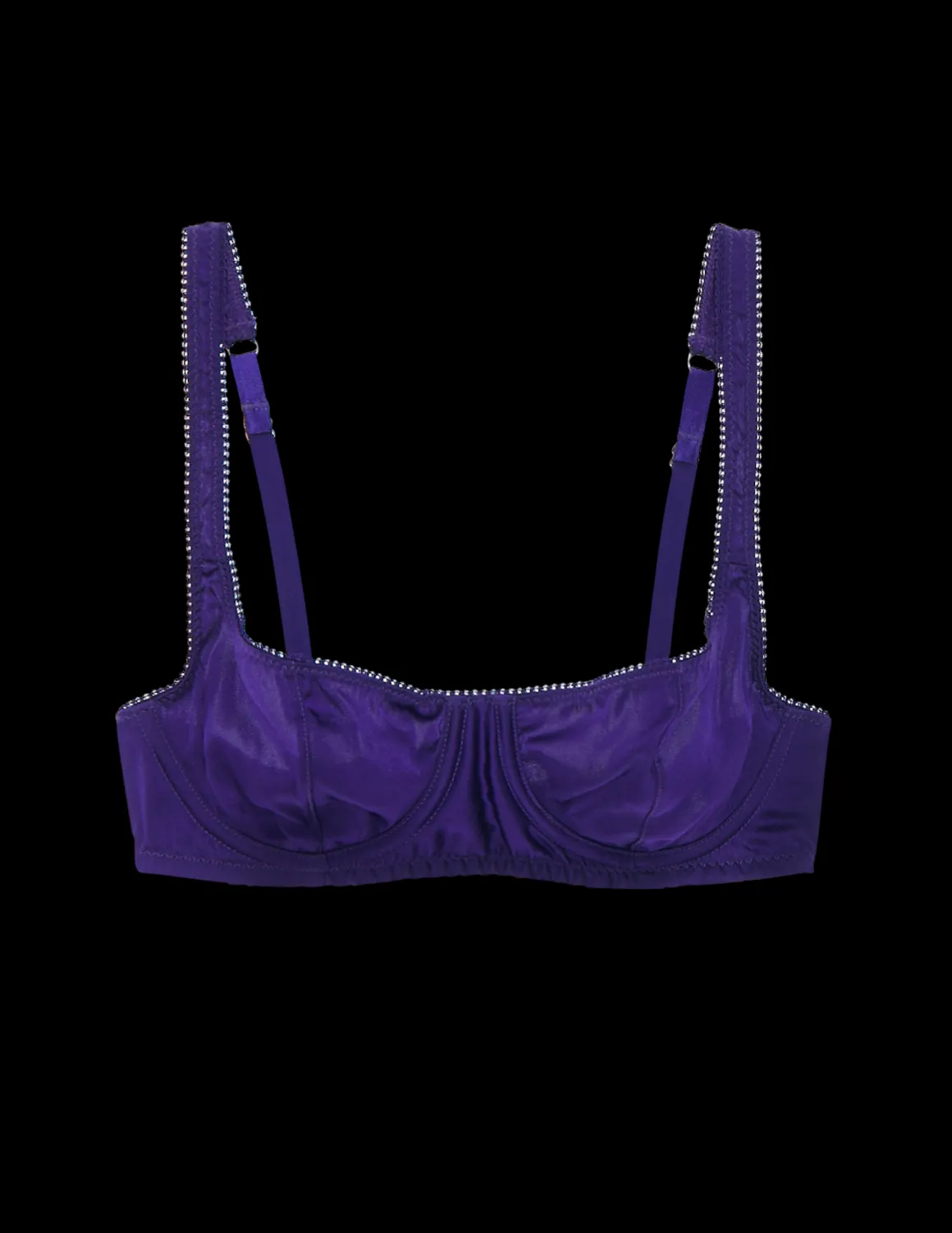 A retro-inspiredclassic balconette silhouette which feature supportive cups, wide-set adjustable straps and hook and eye closure. Looks just as great on an A cup as a D cup. Shiny silky charmeuse.