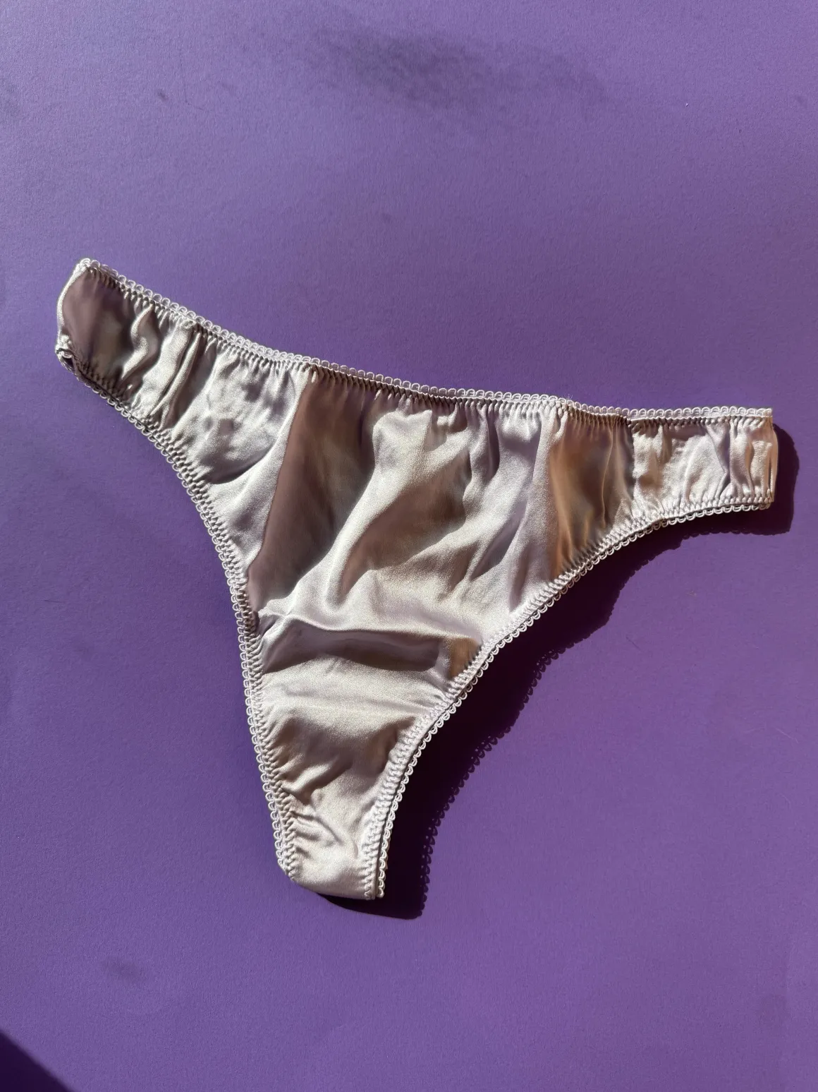 A mid-rise thong cut from lightweight stretch silk charmeuse that feels fine and smooth against your skin.