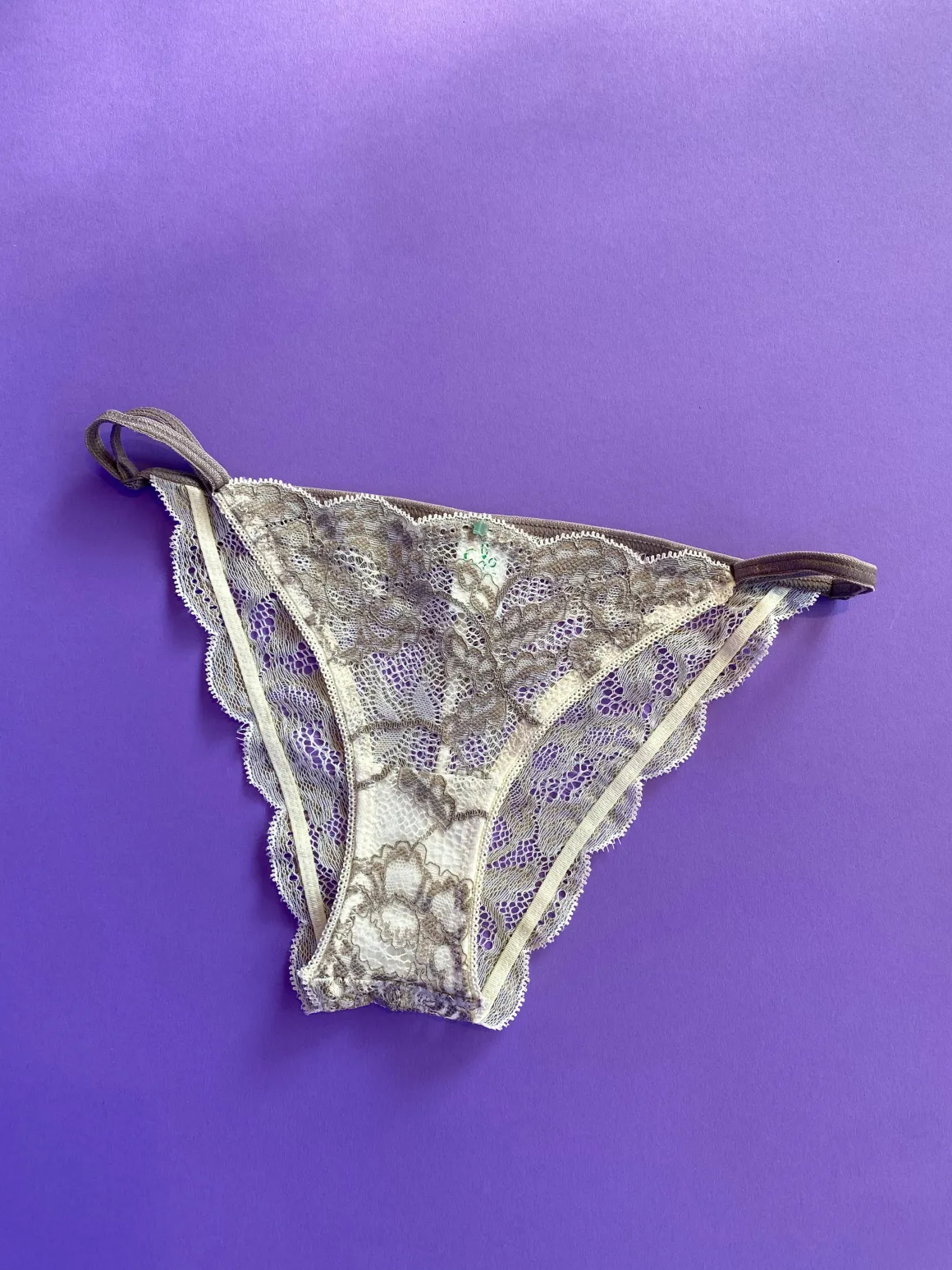 A not-so-basic basic bikini brief with scalloped edges enhances the curvature of your bum. Small semi-precious stone heart detail. Adjustable sides for the perfect fit and no digging!