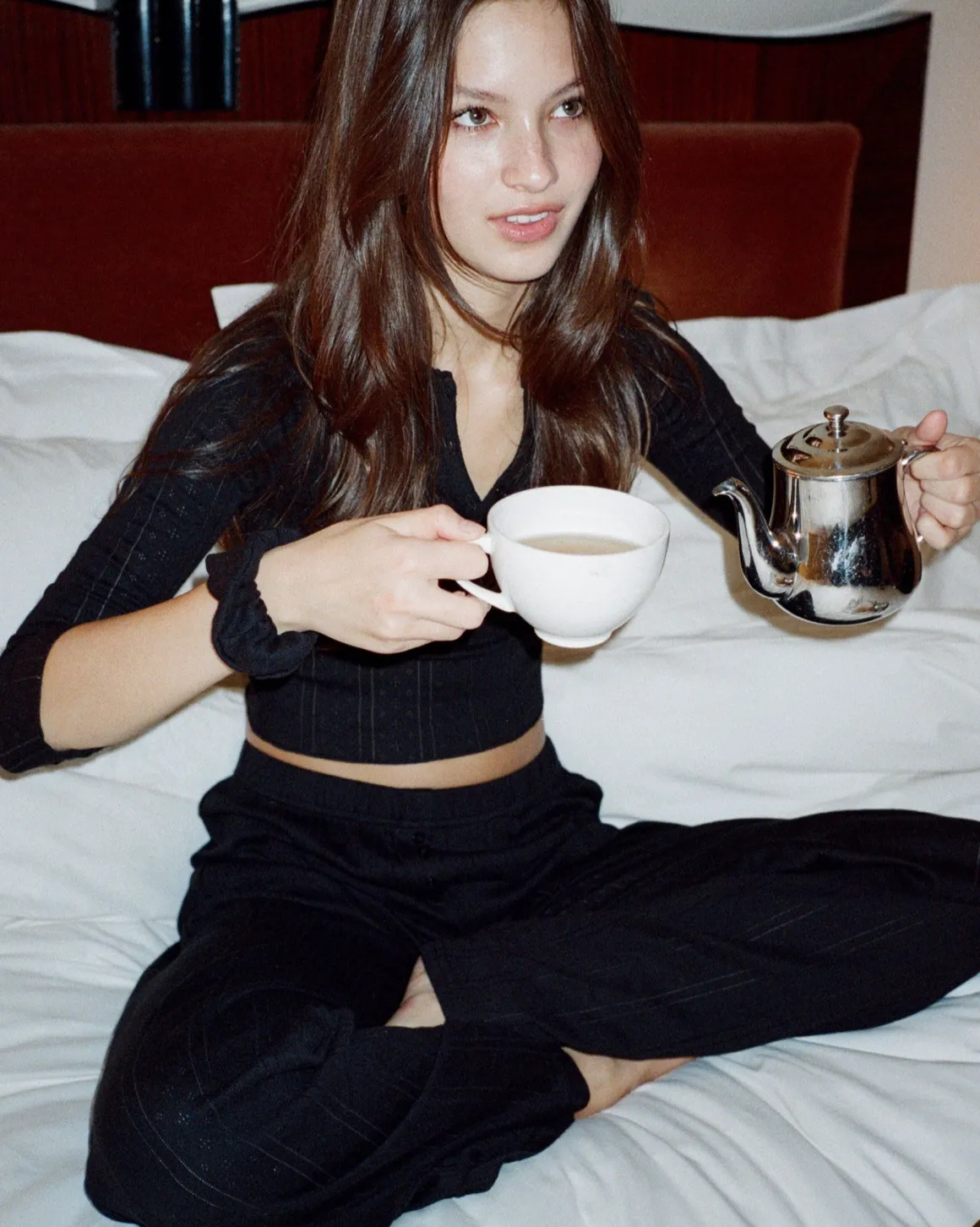 Kick back in these comfy cotton pants, made in Cou Cou’s signature pointelle fabric. Elasticized waistband. A classic straight leg fit, finished with 3 center-front petit buttons. Can be dressed up or down.