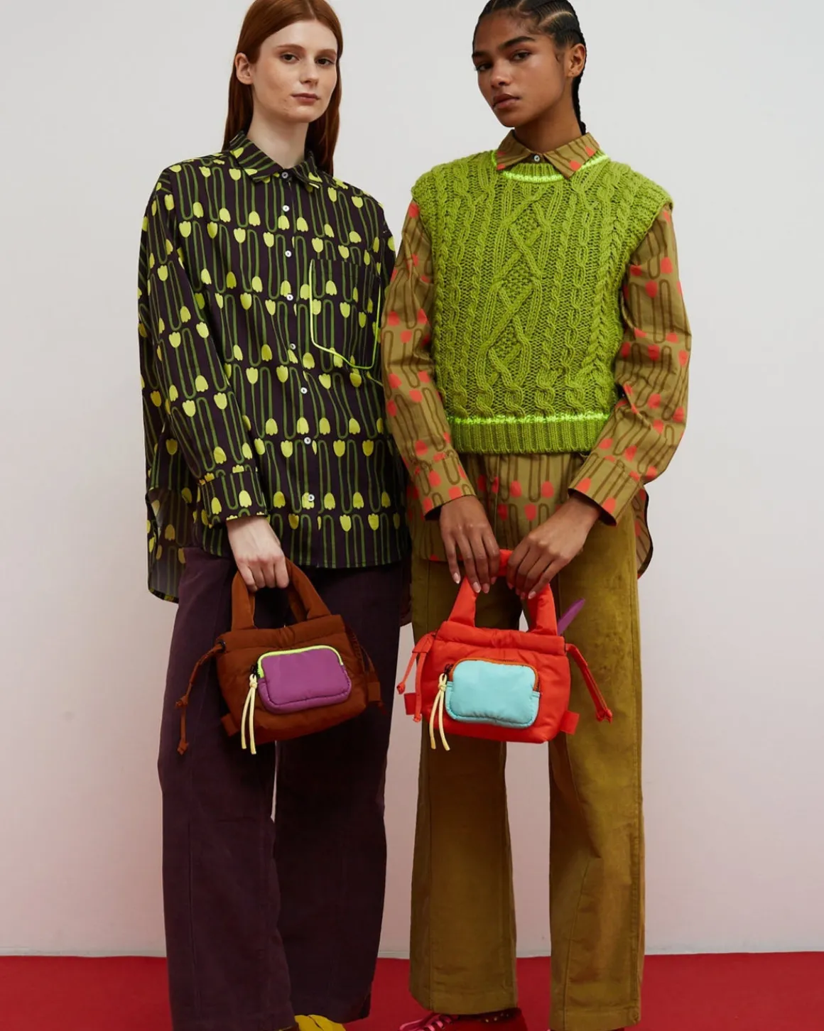 Now here’s an easy way to add a little pop to your outfit – the flip bag is a small padded bag that can be carried by hand or slung across the shoulder thanks to the contrasting long handle. A front pocket to store tiny essentials in and zippers to keep everything secure.