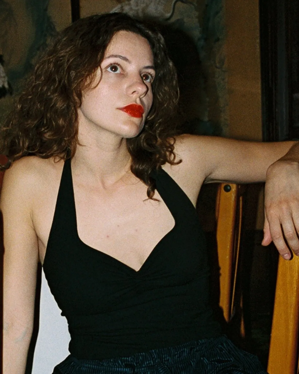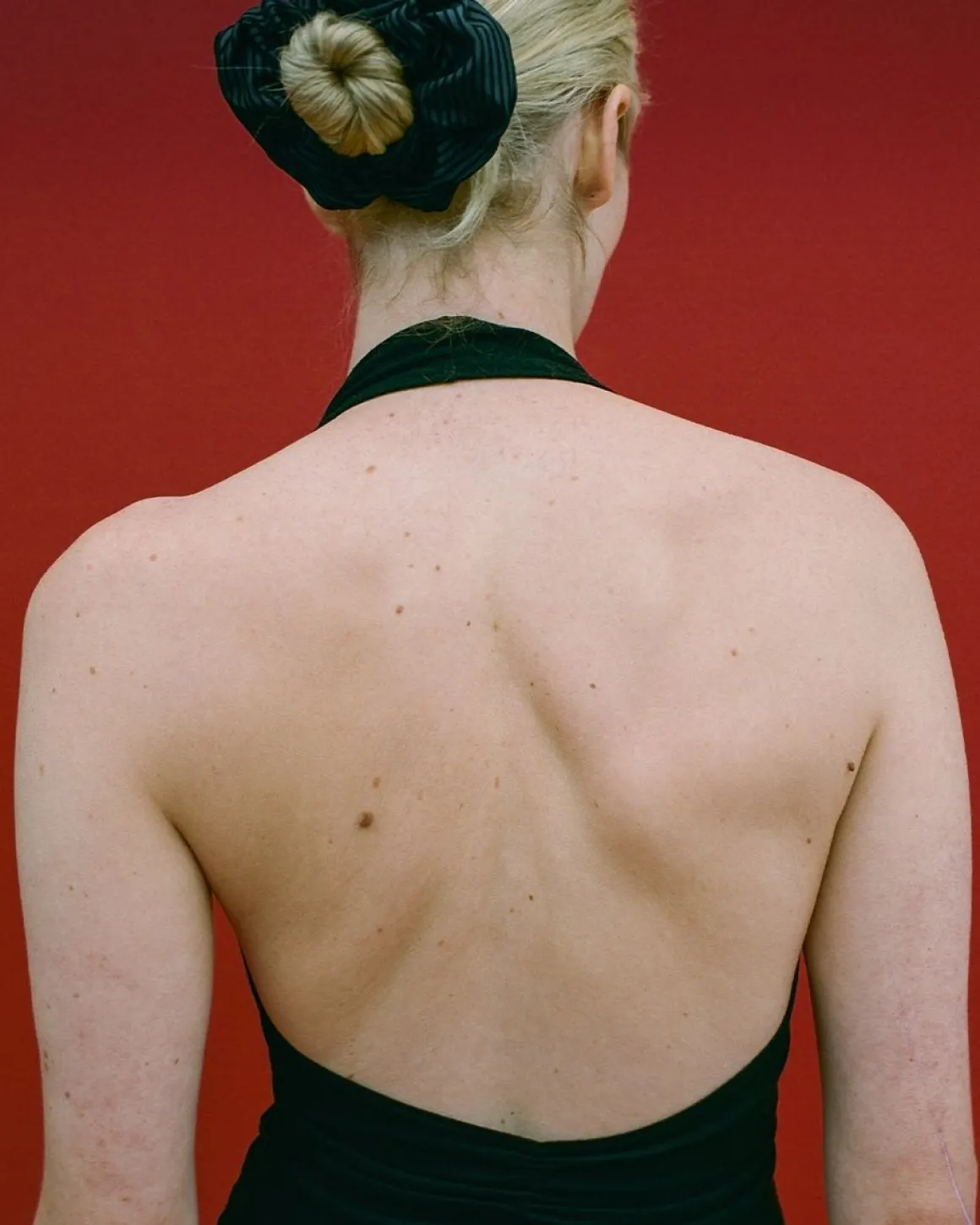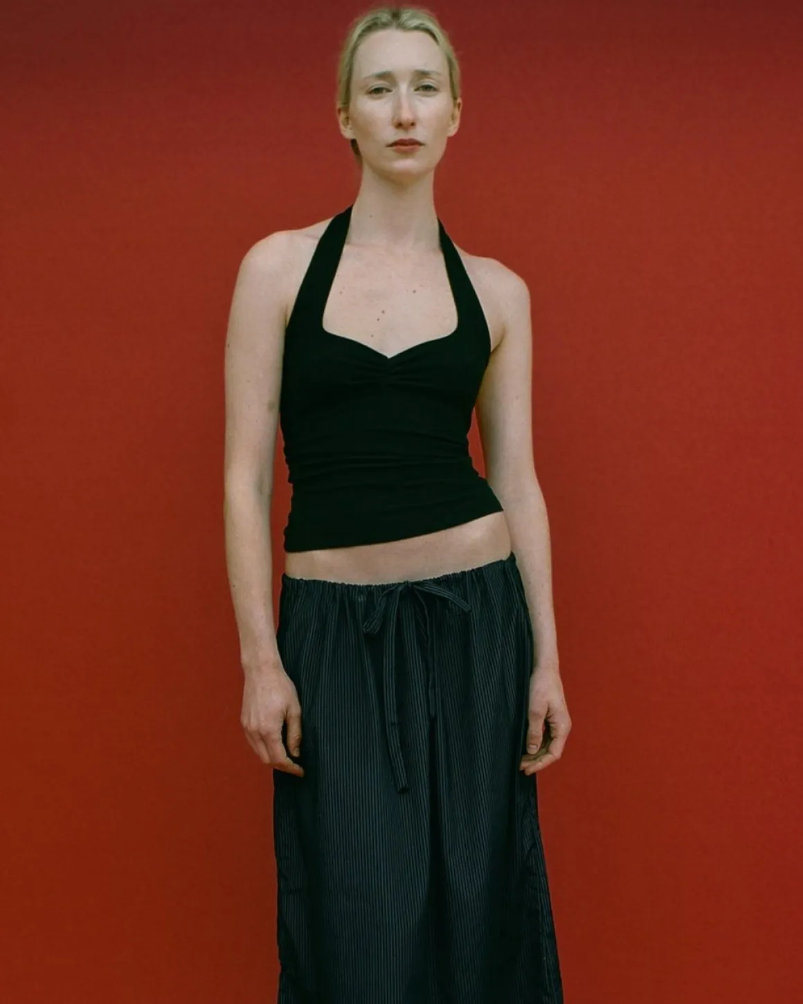 Baby’s got back! Special occasion halter top with a sweetheart neckline and a plunging, ruched back detailing. Made fromthick, high-end cotton spandex that’s lightly brushed for a plush hand feel.