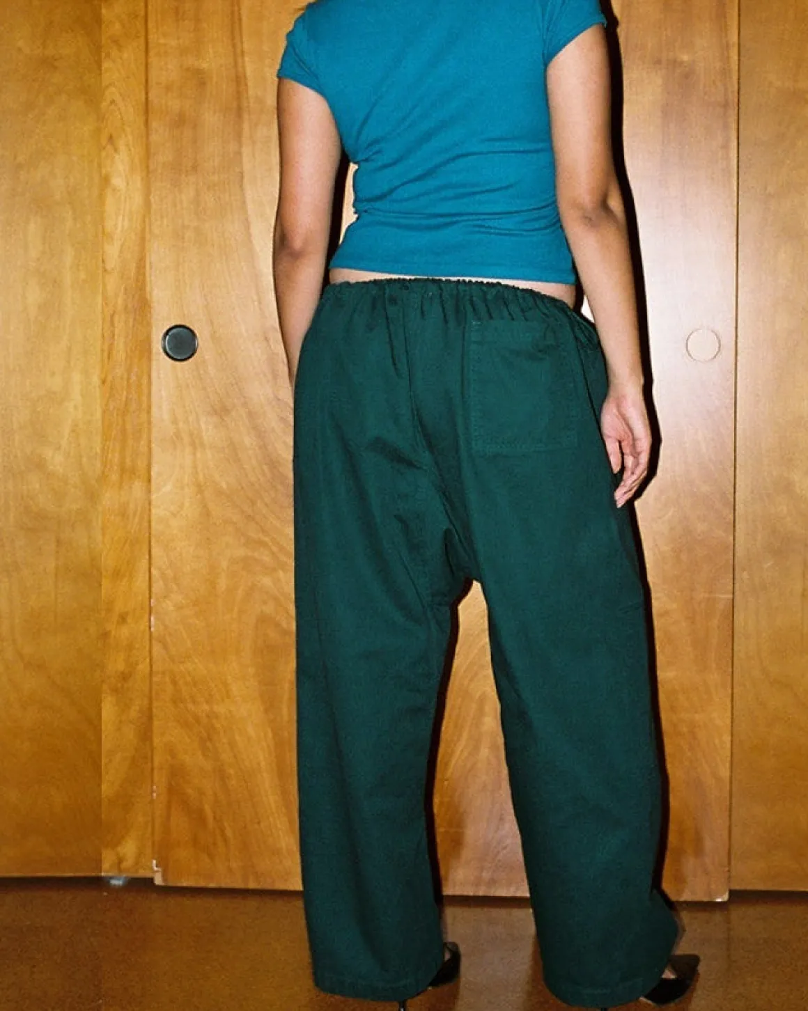 Unisex, all-purpose pant with all-around drawcord, front ties for full adjustability. Sexy side keyhole detail. Front and back patch pockets. One of those magical pieces that fits virtually everyone, through all stages of life. For taller frames, there’s an extra 2 inches of fabric in the hem so your tailor can easily let the inseam out.
