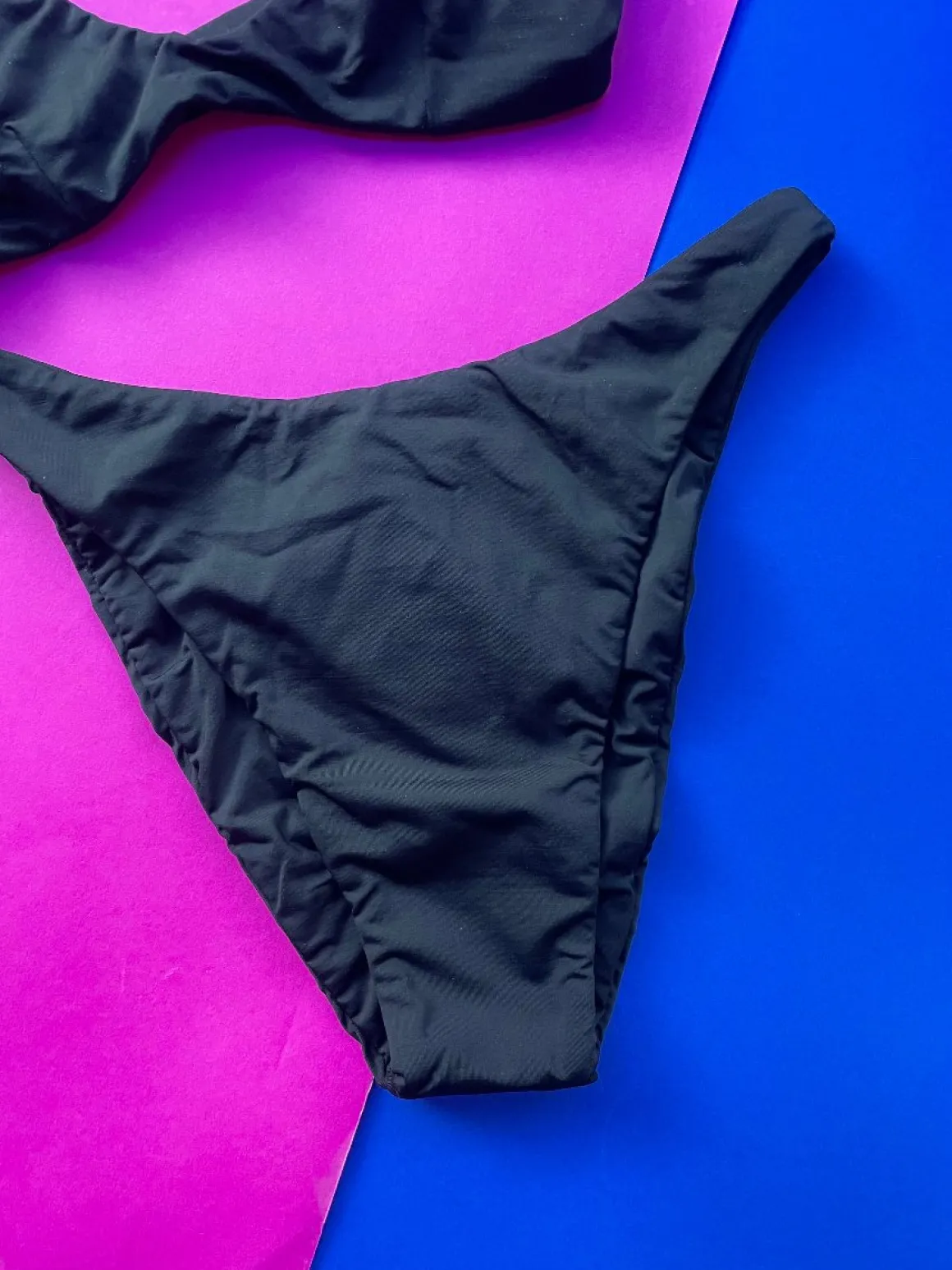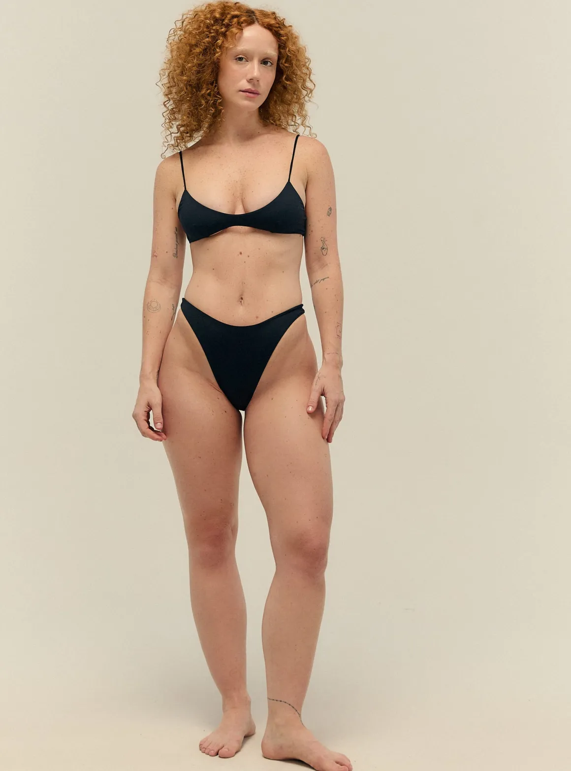 High cut and cheeky bikini bottoms that give a super flattering silhouette and elongates the legs. Haight’s swim fabric is silky smooth.