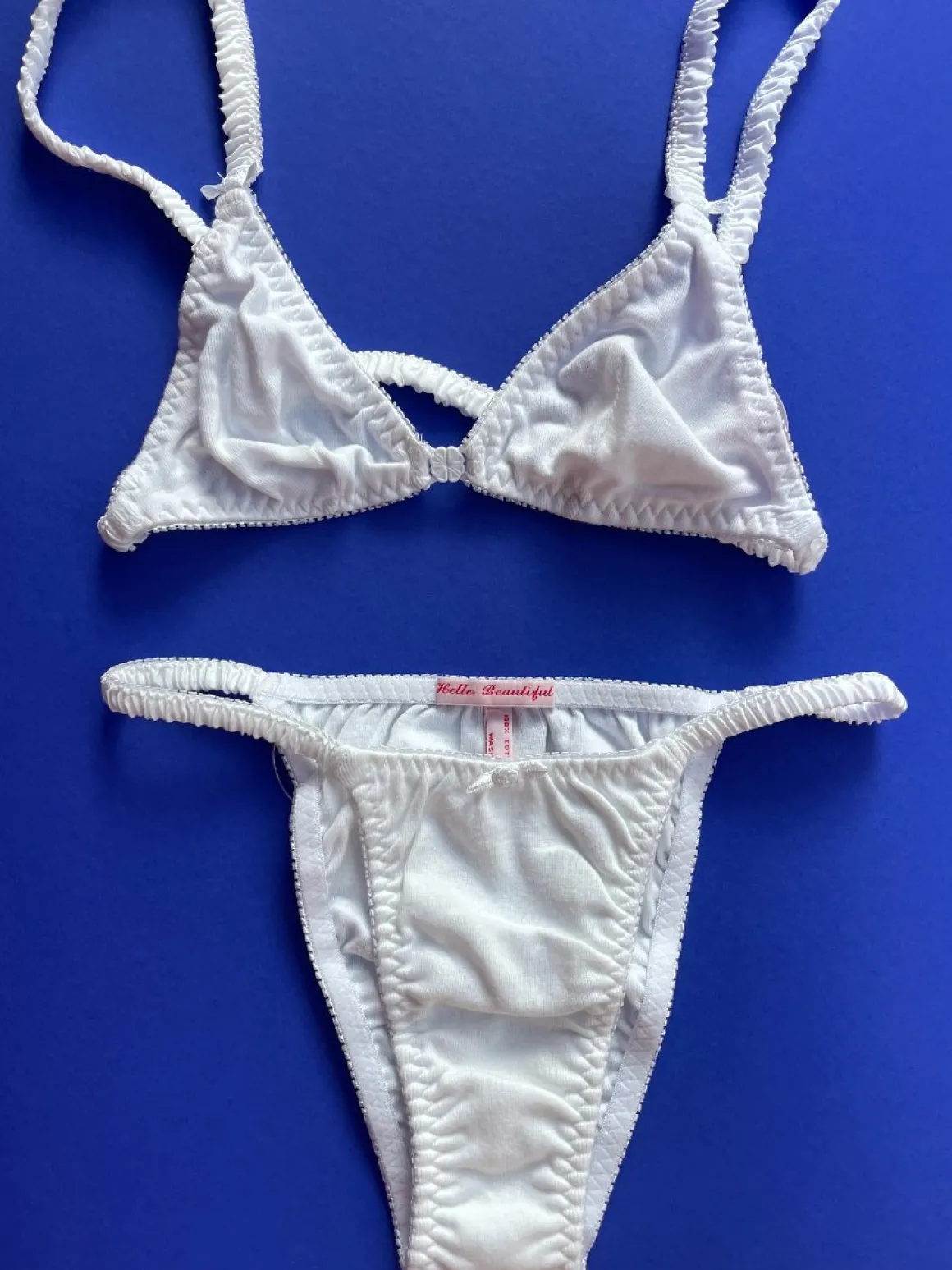 - Custom 100% cotton satin-batiste trim on hips