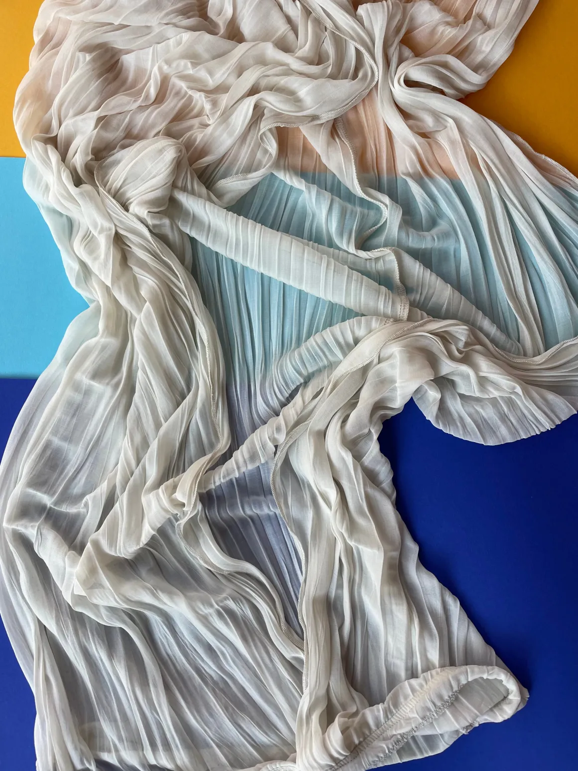 Sheer, wispy strapless dress that opens in front to show off your new fave bikini. Pleated fabric.