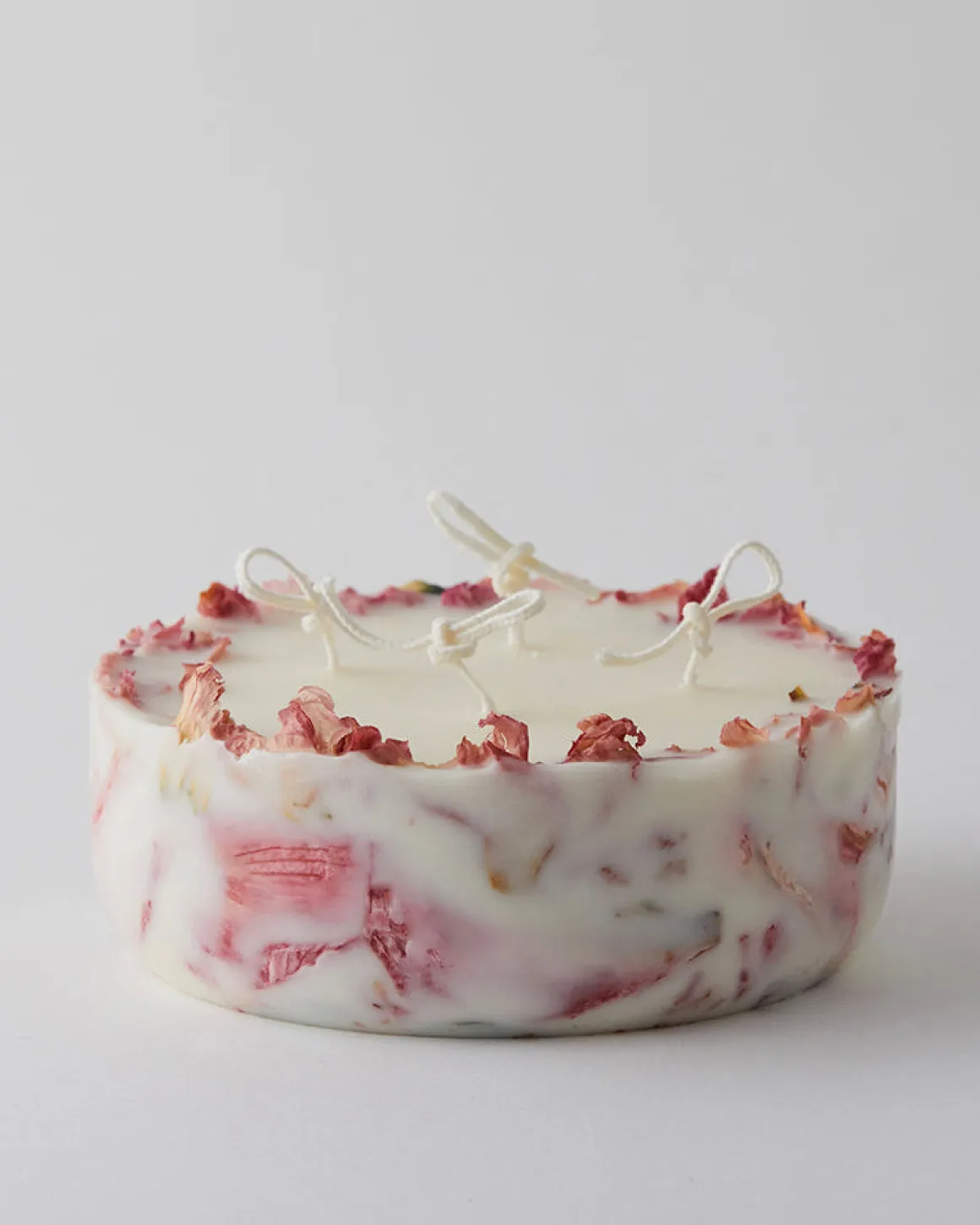 Made from dried flowers and leaves, 100% soy wax, 100% beeswax and blended with essential oils.