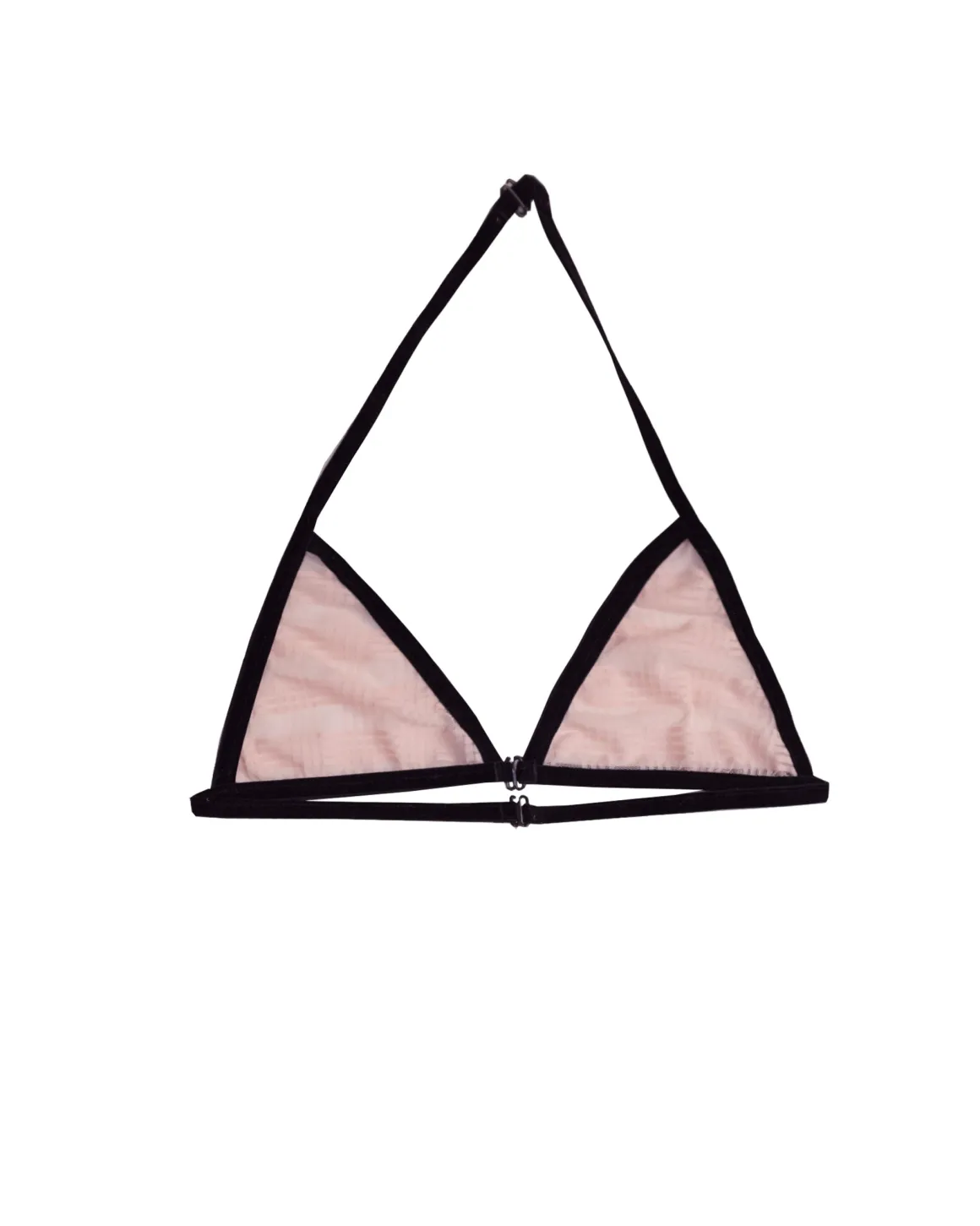We’re swooning over this plaid mesh bralette from Indie designer, Miss Crofton. The front closure plus halter strap gives you that extra lift you don’t normally get from bralettes. Contrasting black velvet trim.