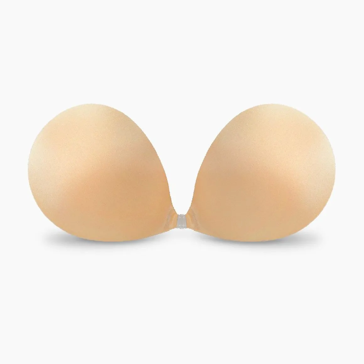 A NuBra that has a built-in hidden underwire for those ladies that still need a little pick-me-up. The self-adhesive bra works with basically any top or dress: low-cut plunging necklines, halter dresses or backless tops. Seamless edging. The front clasp creates some cleavage and lift. Made of fabric and foam, this is one of their lighter options that you can wear all day and feel free!