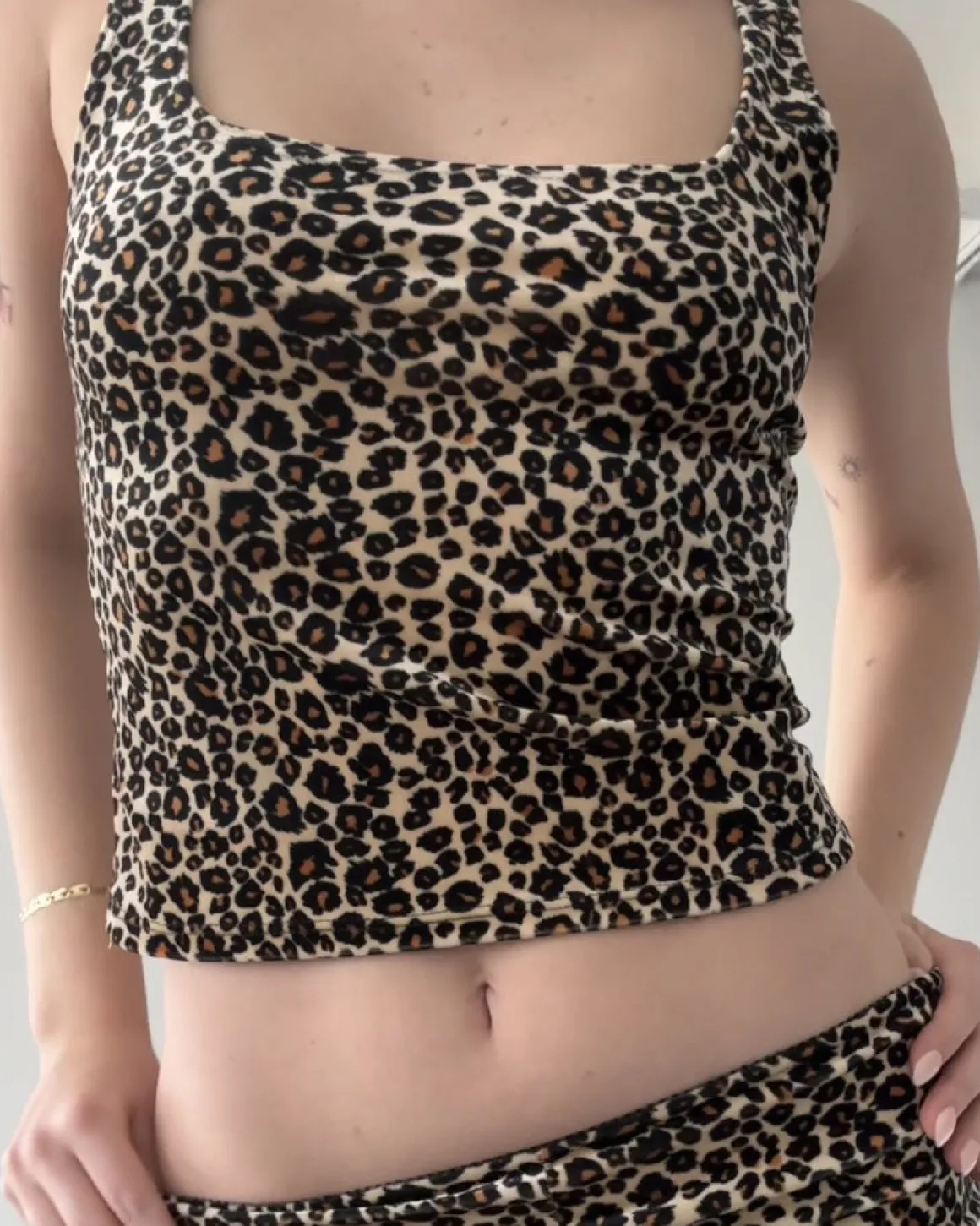 Cozy square neck tank top with an elegant velvet sheen. The neutral (yes, leopard print IS a neutral) print goes with anything.