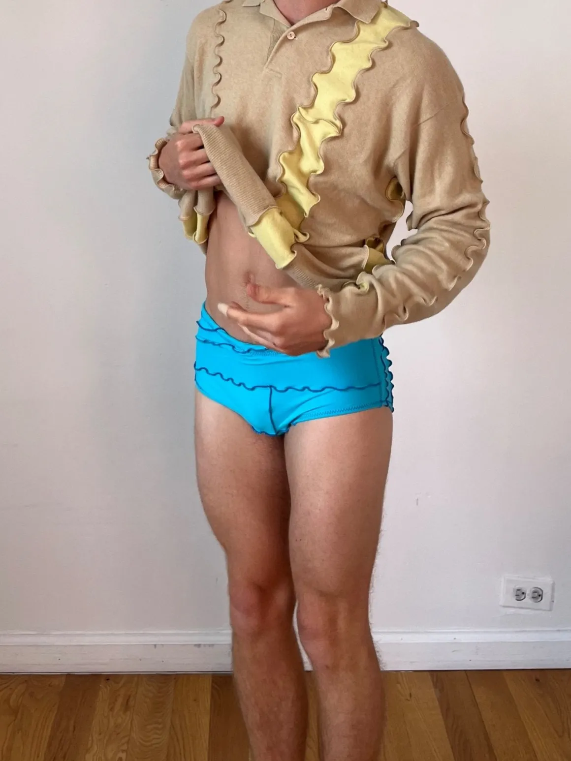 So many requests for these – a fun take on men’s Speedo swim briefs – Sherris uses her zero-waste patternmaking methods and utilizes leftover fabrics to make these each piece one of a kind.