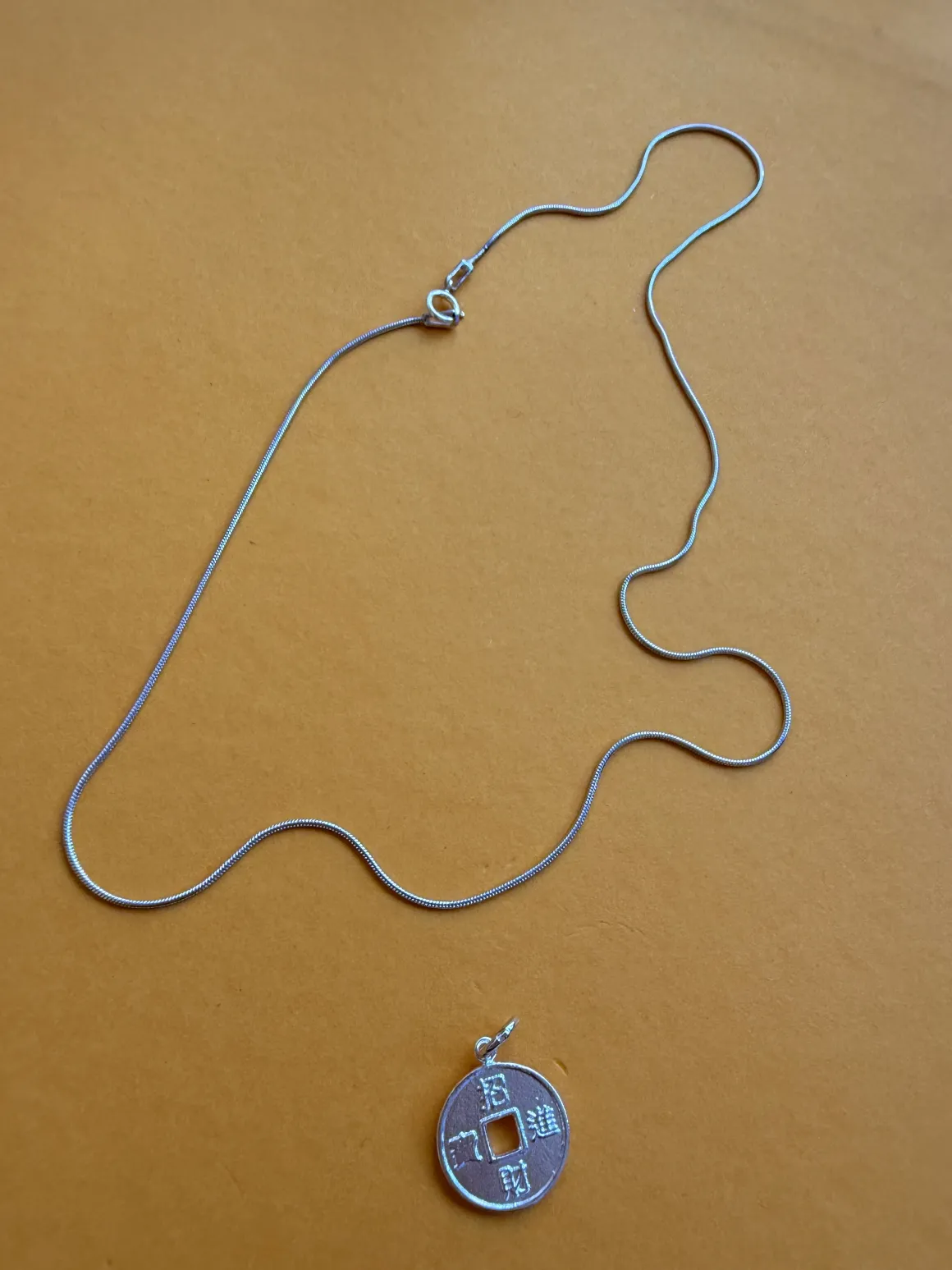 Lucky charm features dragons on one side, and “Usher in money and wealth” in the designer’s native Mandarin on the other.