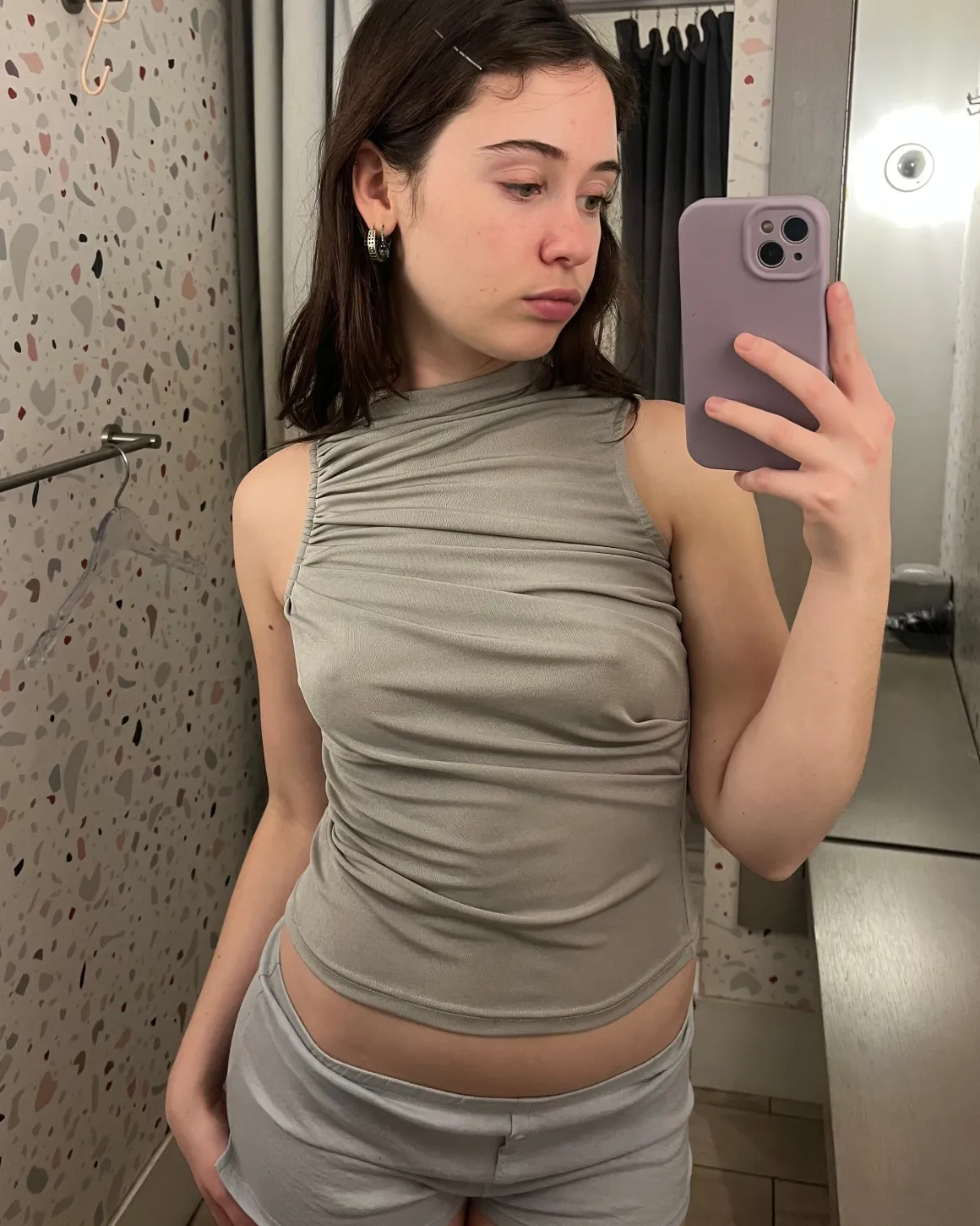 A super soft and slightly glittery ruched tank inspired by NYC’s Downtown scene.