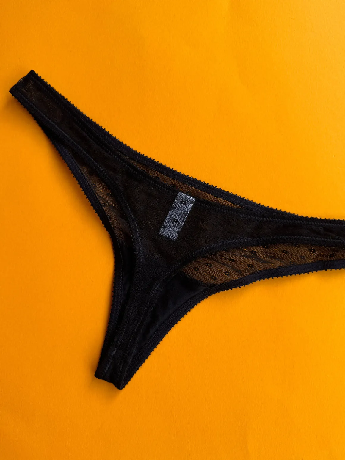 Flattering low cutthong made in fine tulle with a delicate flower pattern. Evokes the sex appeal and ease of the 70s.