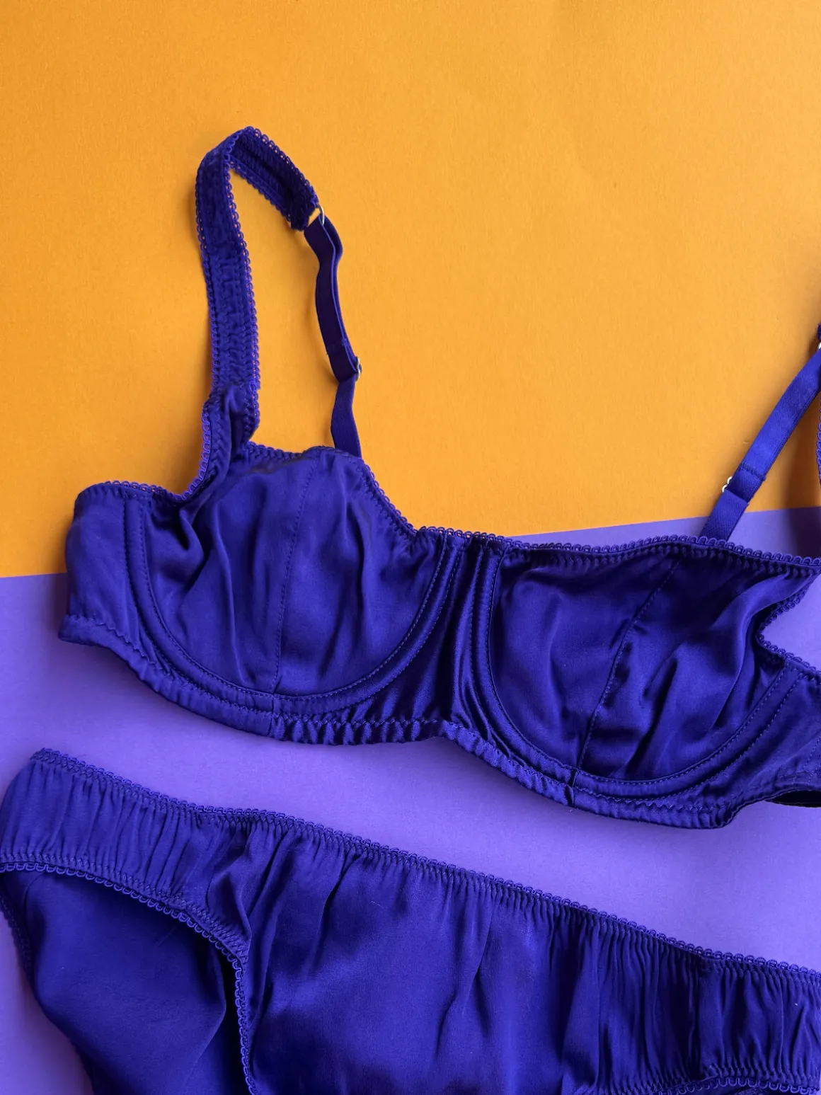 A retro-inspiredclassic balconette silhouette which feature supportive cups, wide-set adjustable straps and hook and eye closure. Looks just as great on an A cup as a D cup. Shiny silky charmeuse.