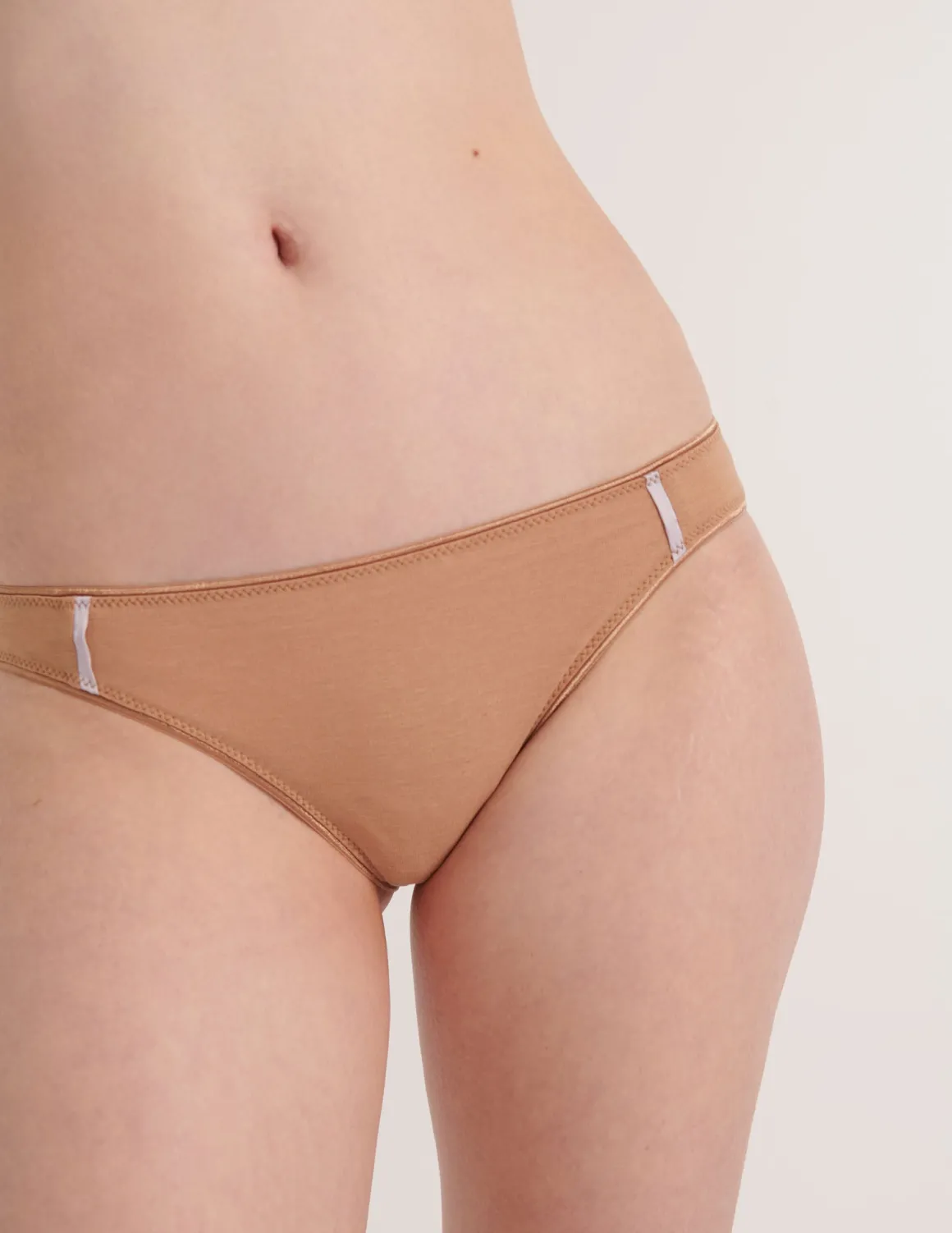 Classic low-rise panty crafted from soft slightly sheer cotton crepe and accented with contrastingly shiny silk charmeuse panels at the sides.