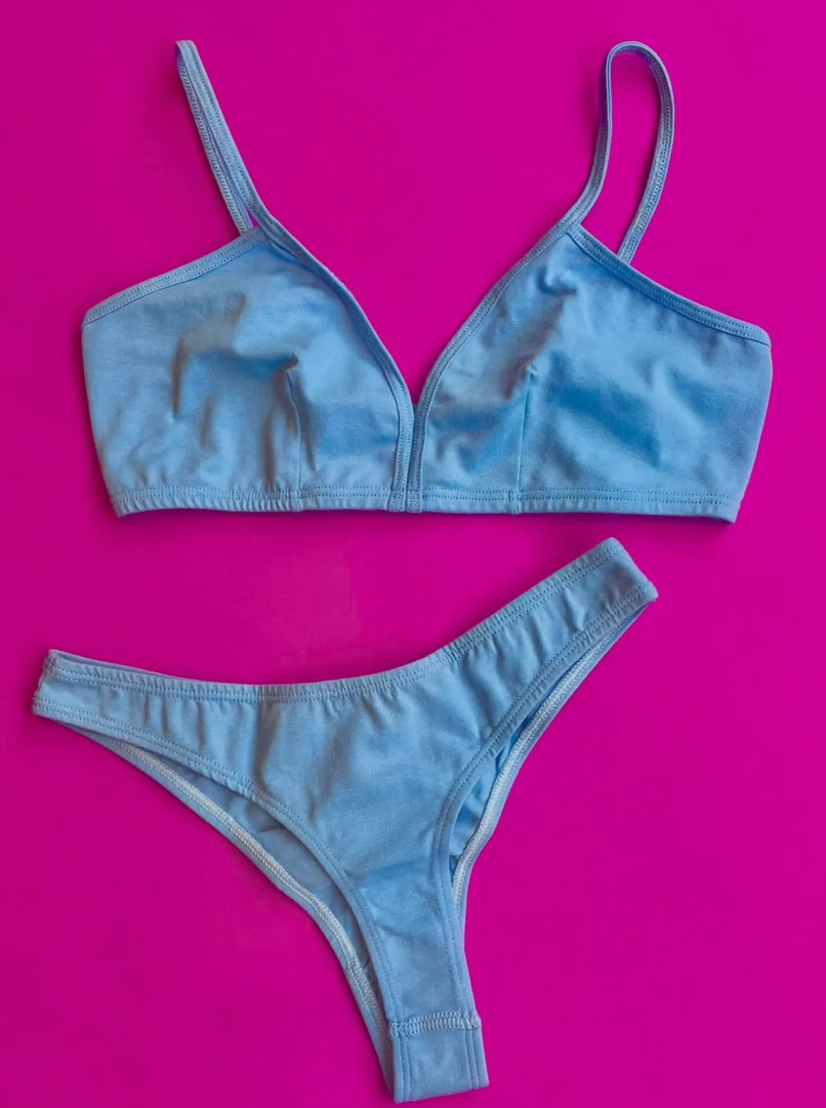 Feels like nothing on the skin thanks to the no side seam design.Made of 2 panels of very soft cotton for pure comfort. It features darts for a good hold.