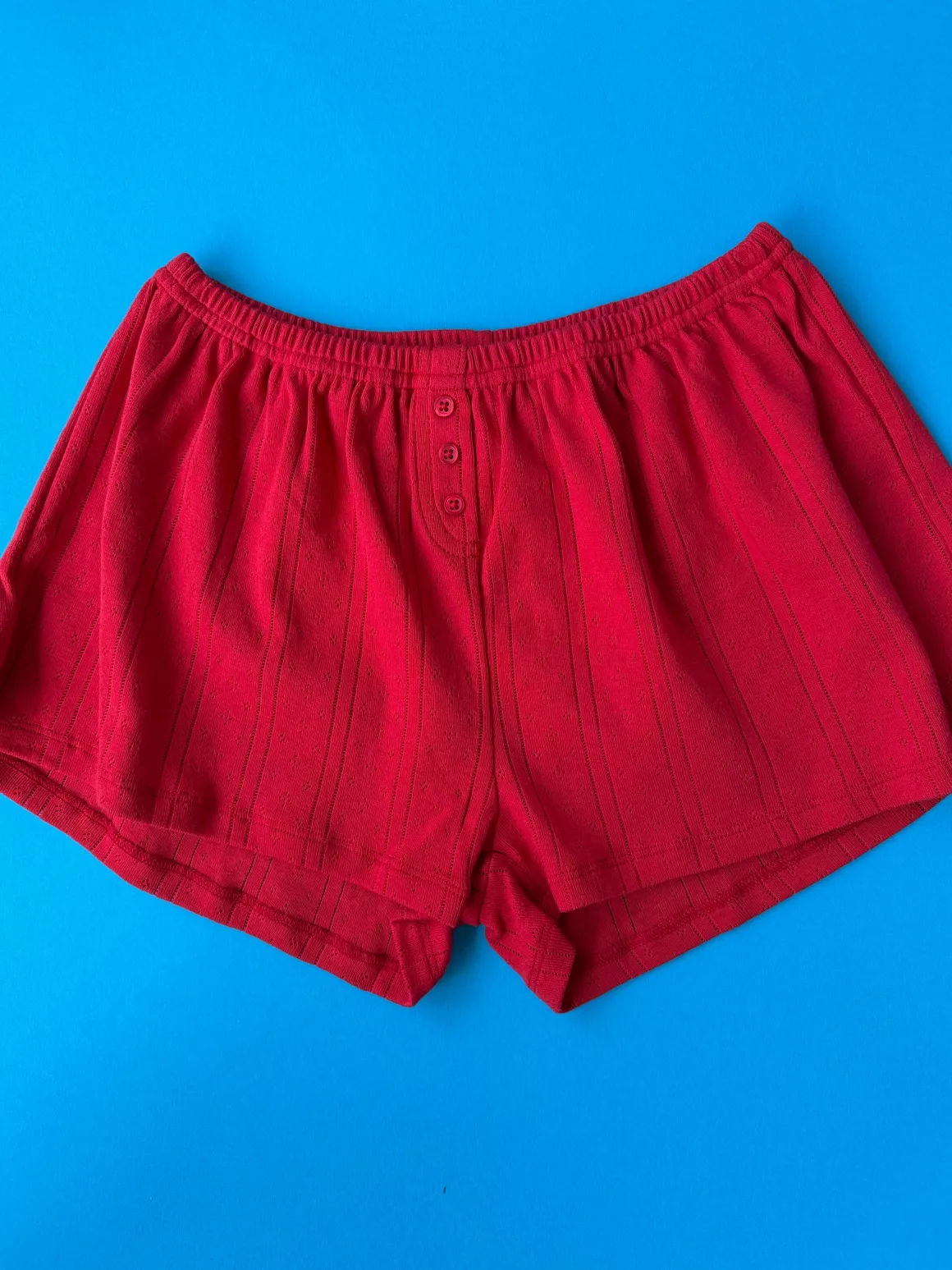 For lounging or running errands around town, these boxer-style pointelle shorts have a comfy elastic band and 3 tiny decorative buttons.