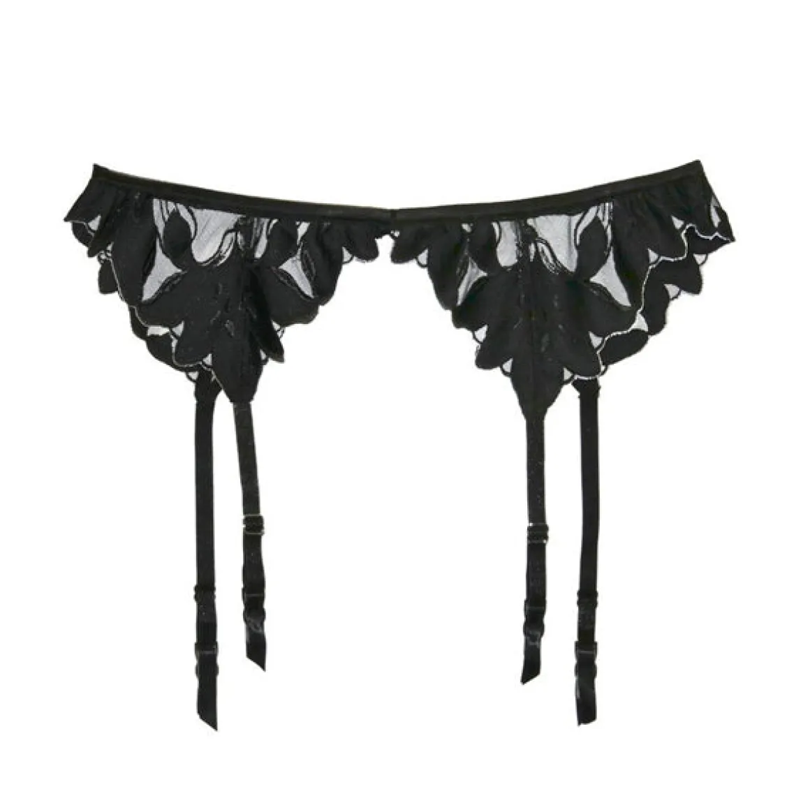 Part of Fleur du Mal’s best selling Lily Lace collection this garter belt features sheer tulle with floral embroidery.
