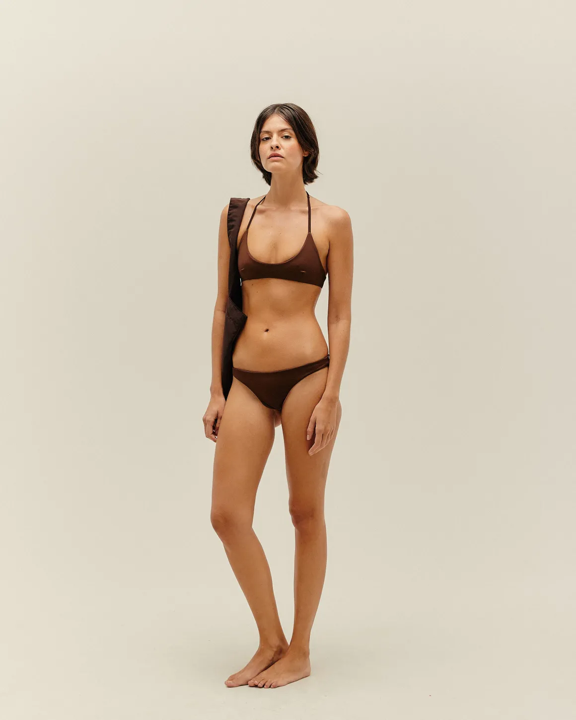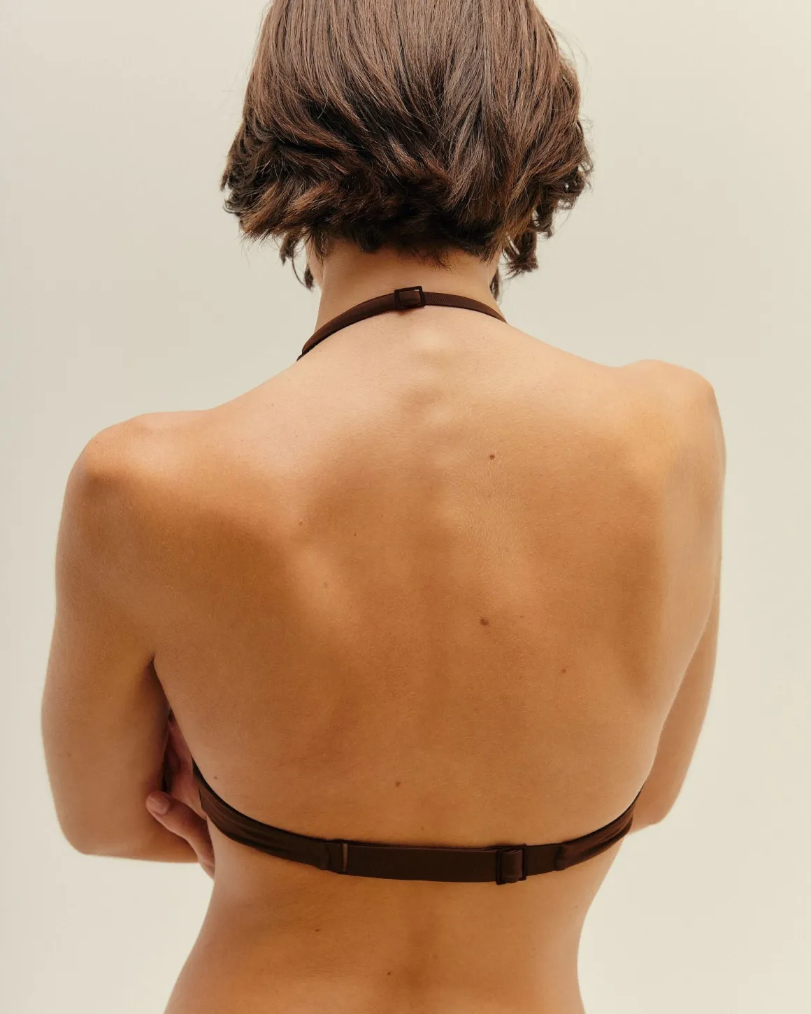 Sporty yet chic, low-coverage bandeau top with a thin adjustable neck straps is stunning. HAIGHTuses only the silkiest, smoothest swim fabrics.