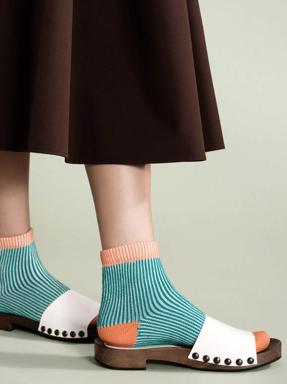 nspired by the colorful striped beach umbrellas, this jacquard-knit pair has an extra smooth touch and no frays on the inside.