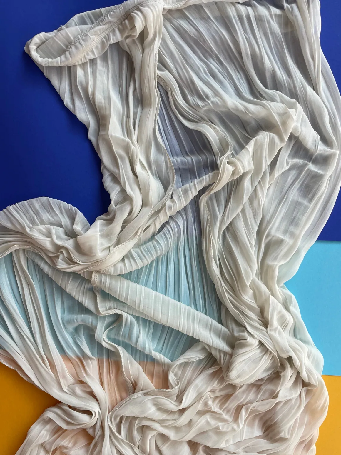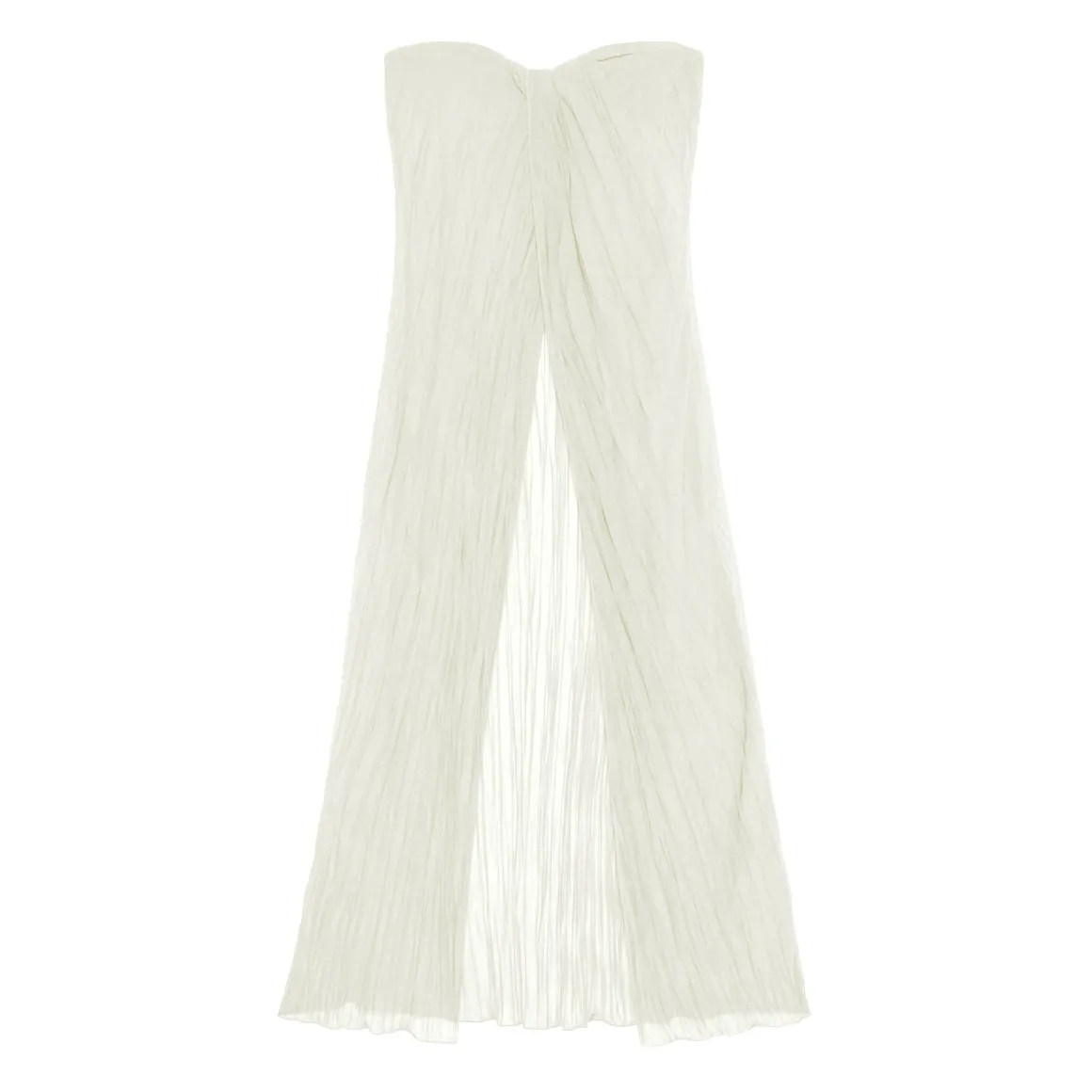 Sheer, wispy strapless dress that opens in front to show off your new fave bikini. Pleated fabric.