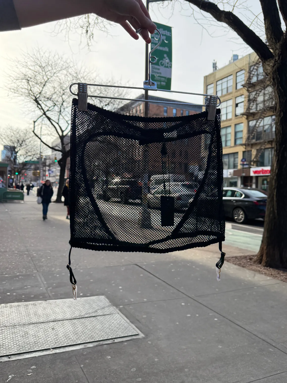 Stretch fishnetsuspender skirt with an open-back design and attached garter straps that turn the whole look into a statement.