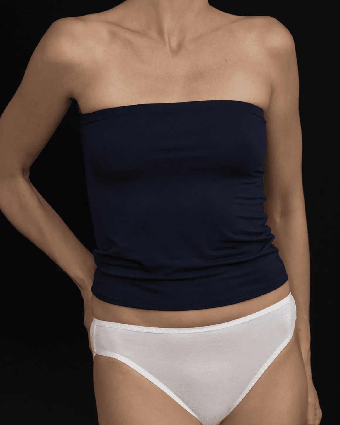 Thoughtfully designed strapless top with many potential layering opportunities. Classic, close fit and made in the softest bamboo jersey fabric.
