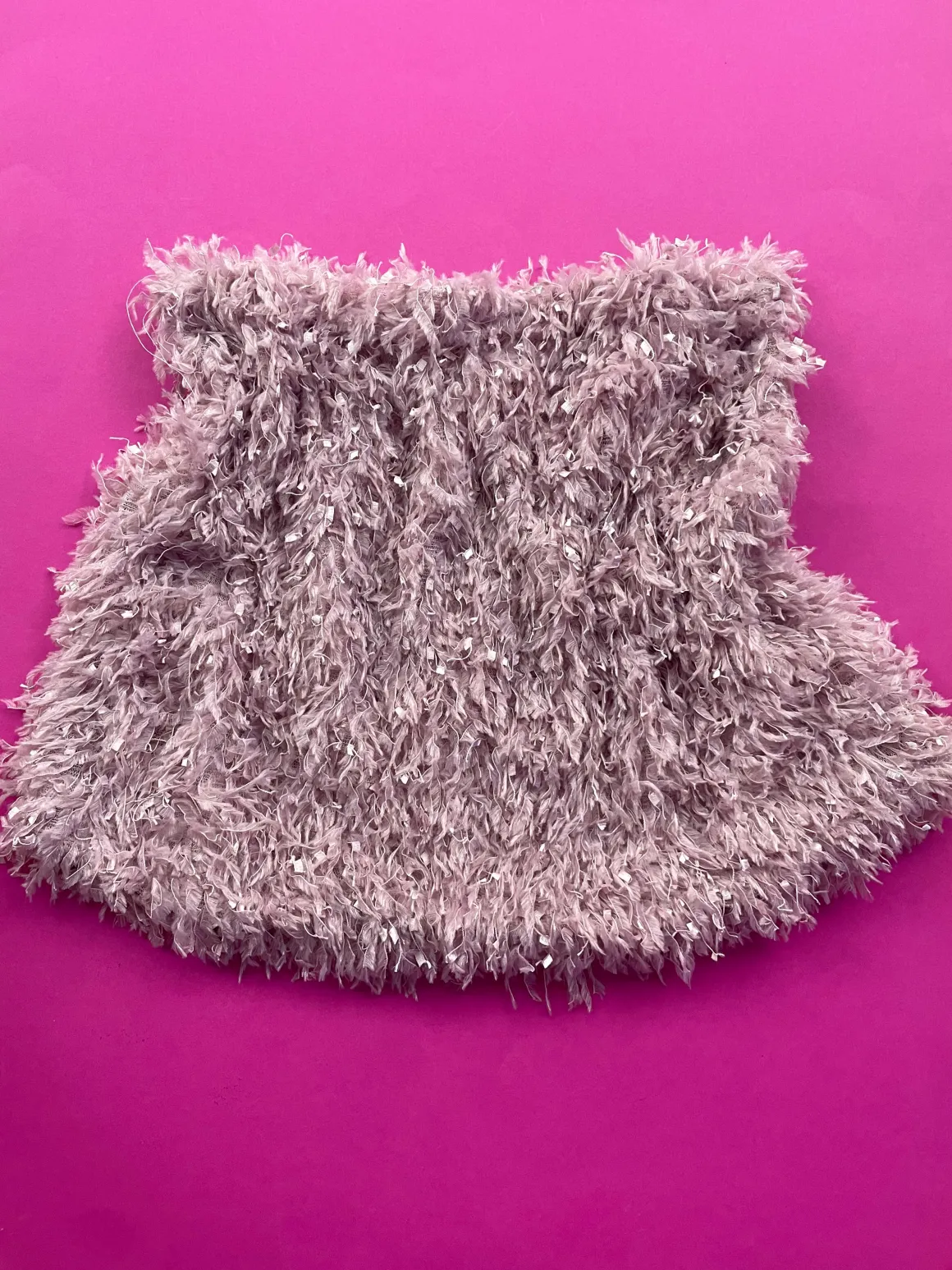 Shimmy your way out of any situation with this adorable feathered skirt. 1 ply dusty pink skirt made EXCLUSIVELY for us by Miss Crofton! Matching bandeau bra and panty available.