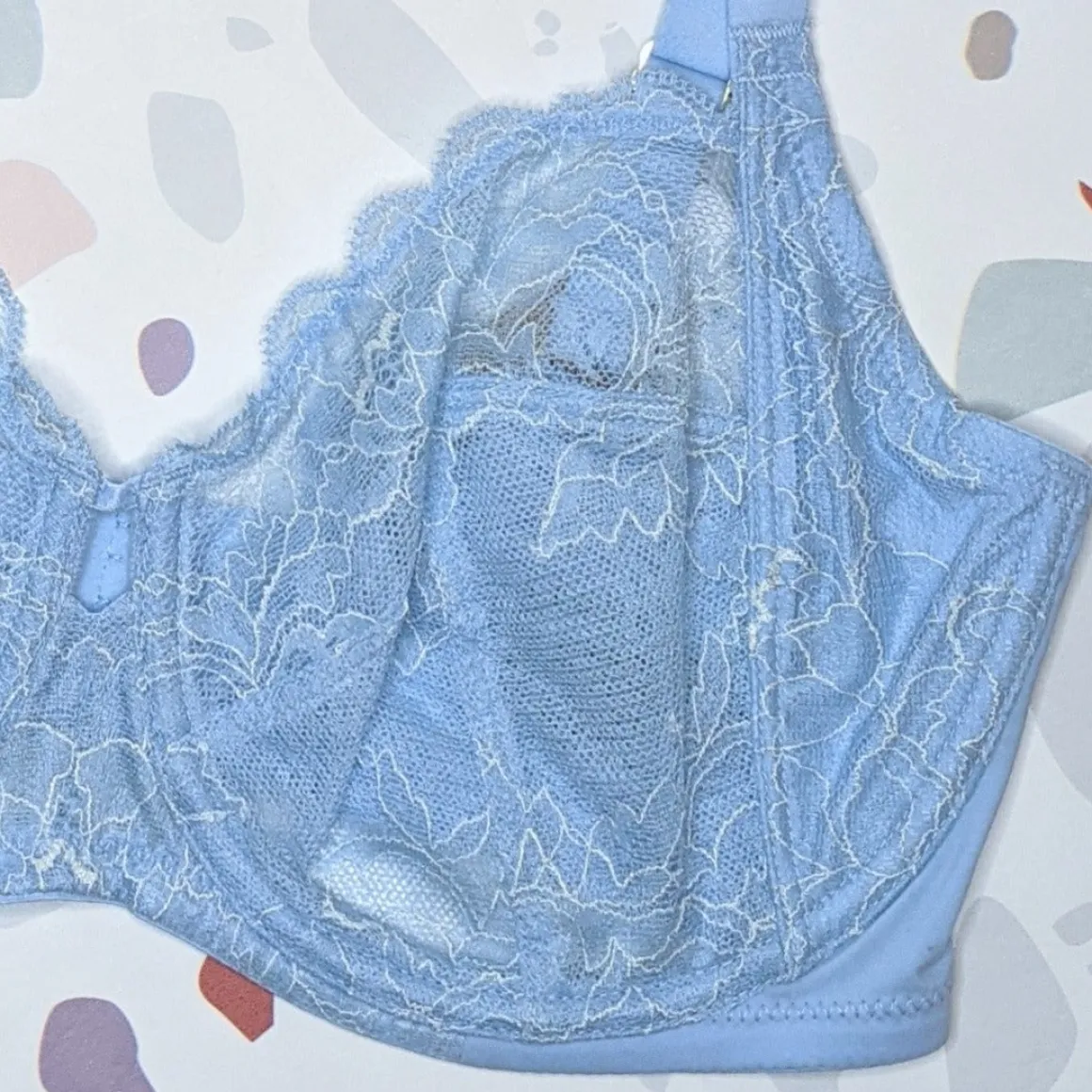 This lacy 4-part bra is engineered to support without sacrificing comfort. The bottom of the cups are linedwith rigid tulle for extra support.