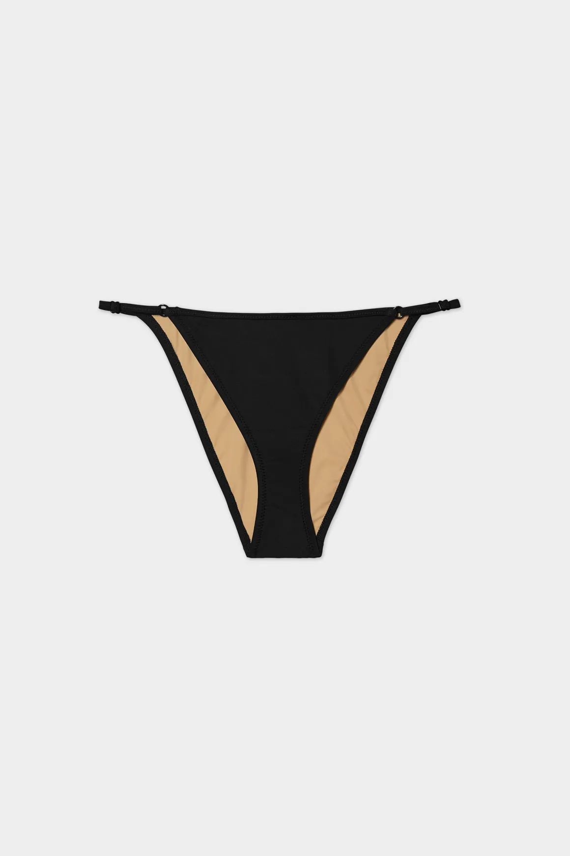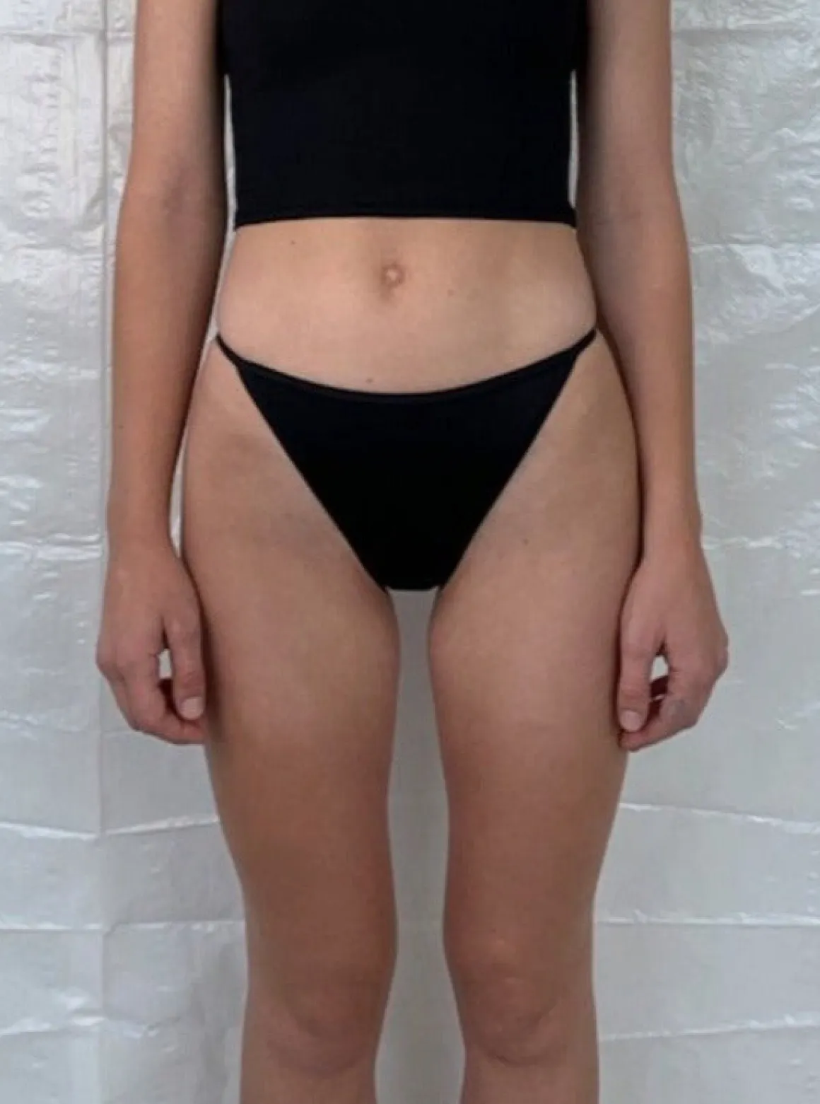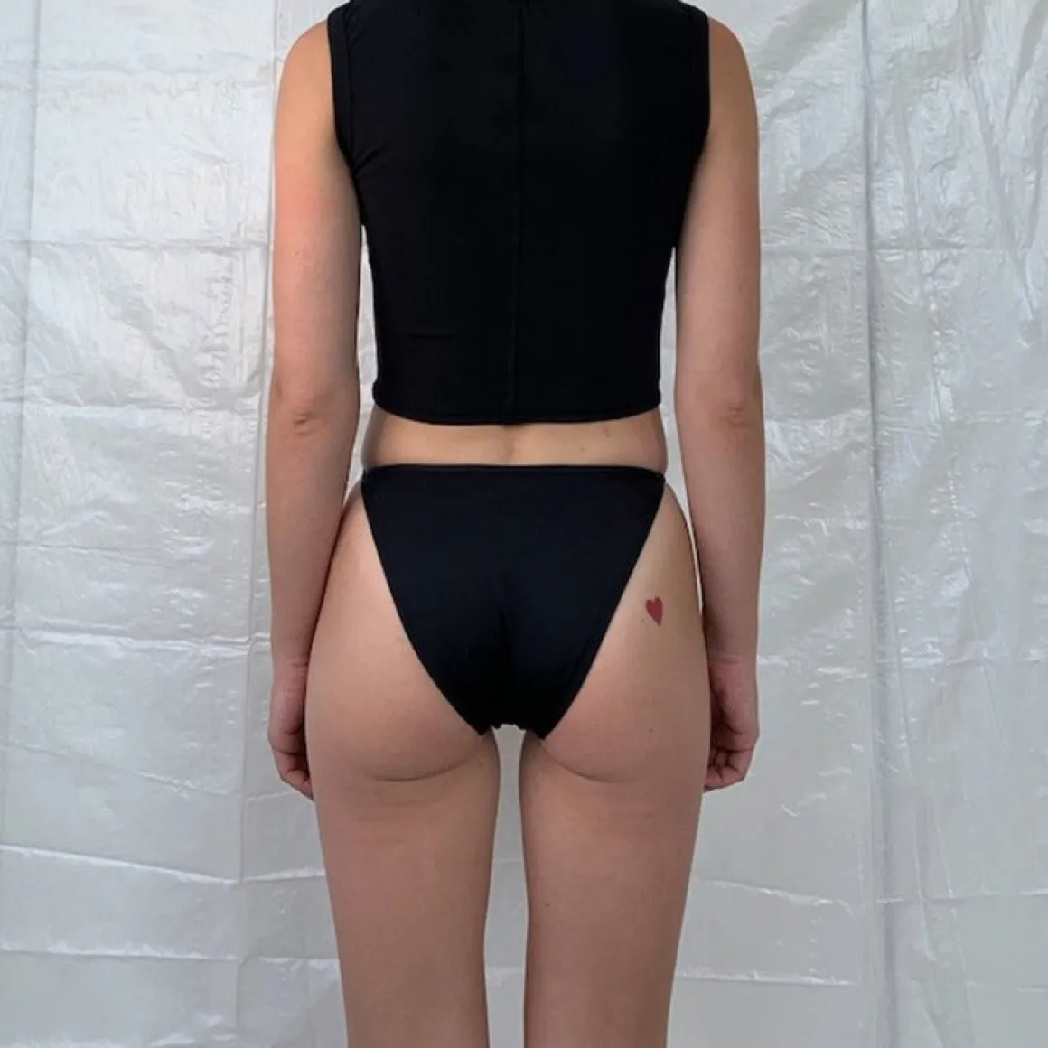 A classic and flattering string bottom, meant to sit anywhere on the hips you prefer. Finished with zig-zag stitching.
