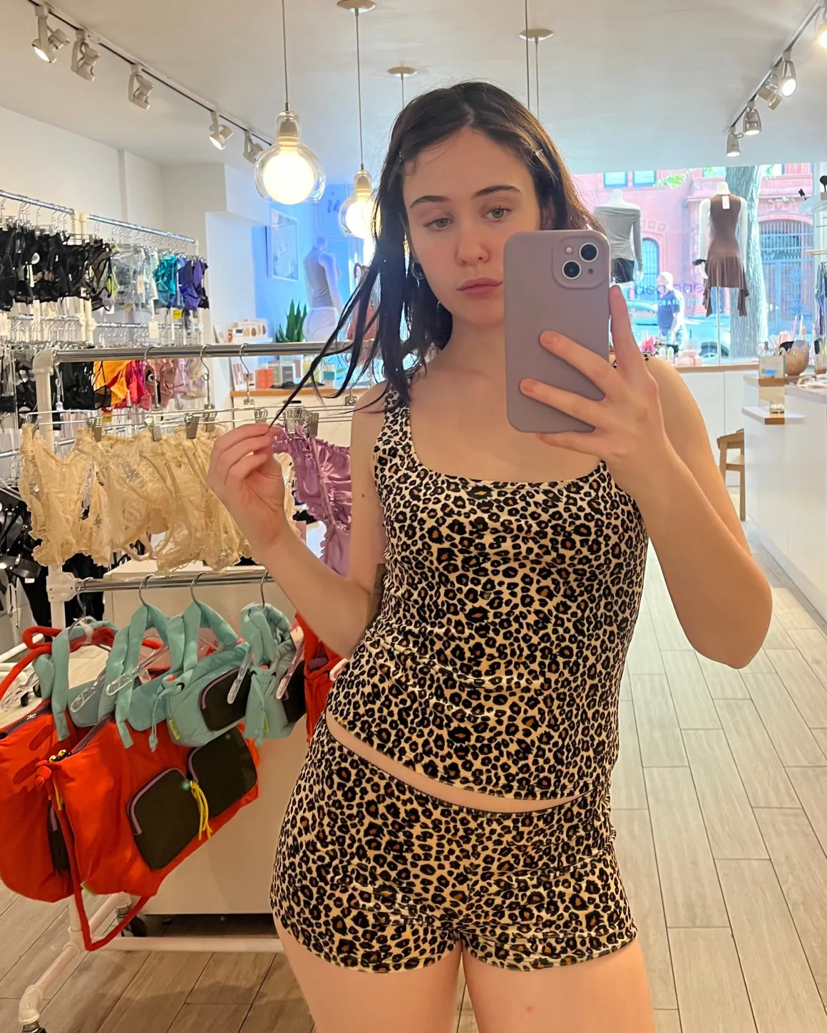 Cozy square neck tank top with an elegant velvet sheen. The neutral (yes, leopard print IS a neutral) print goes with anything.