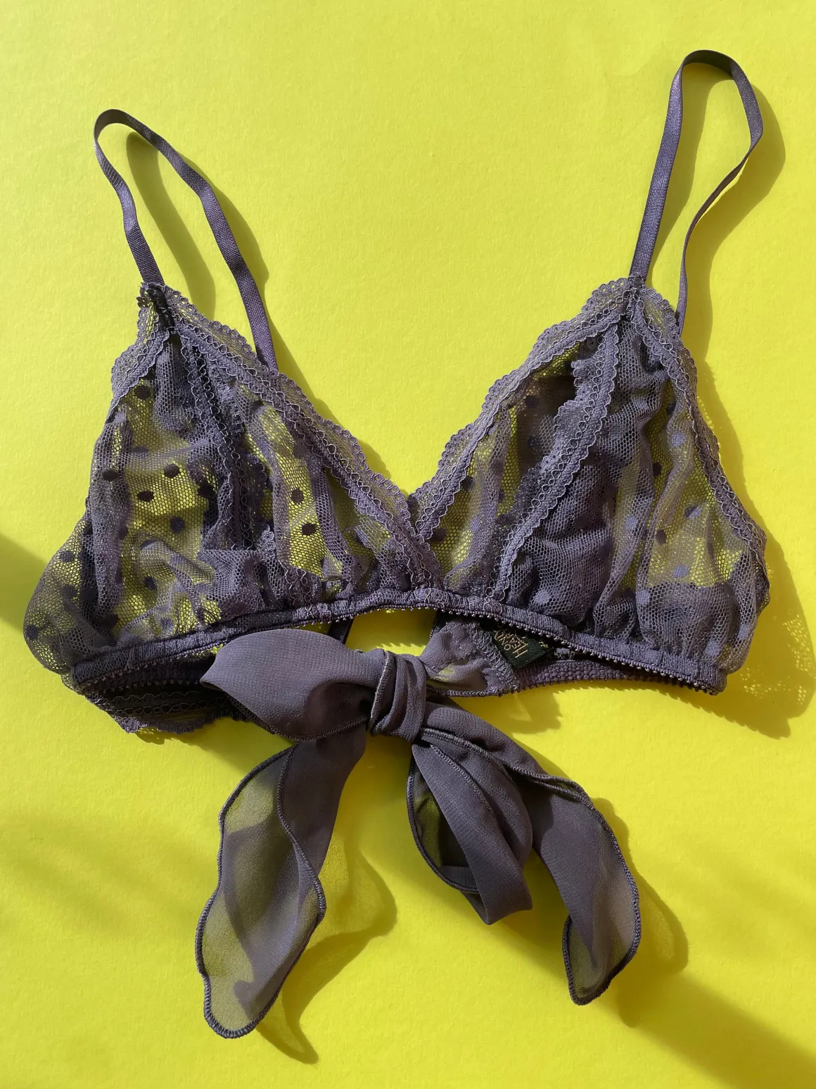 Delicate Swiss dot netting with a chiffon tie closure, the ONLY HEARTS Coucou Lola Bralette is sweet but far from innocent. Lace trim accenting peek-a-boo cups, this barely-there bralette makes quite a statement.