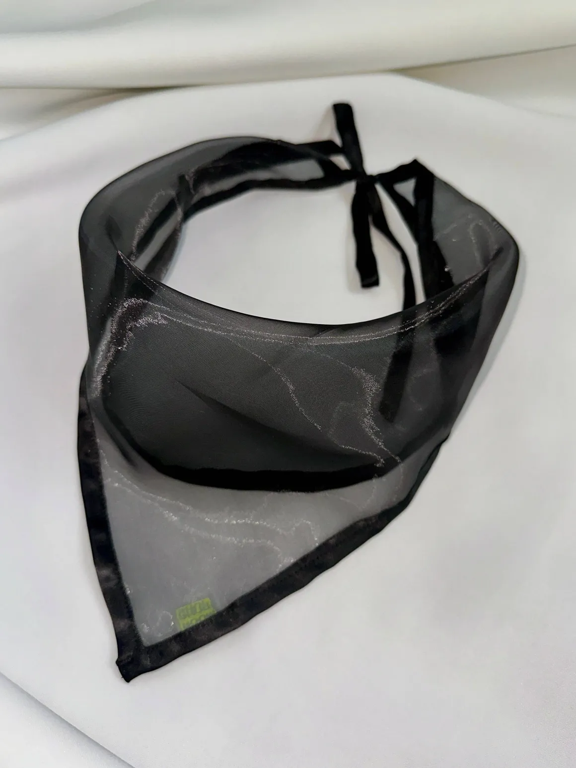 Dreamy sheer organza framed with silky satin ribbon in an easy tie back headscarf, also extremely cute as a neck scarf.