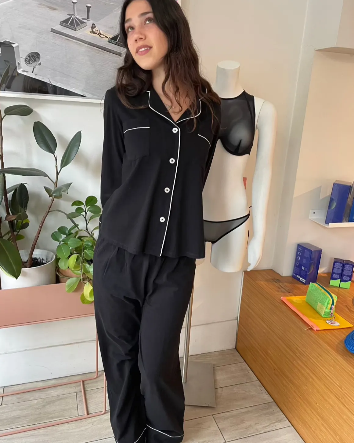 Finally, the perfect weight cotton PJs! These classic PJs come in brushed Pima cotton, the finest of cottons, in a cloud soft ‘feels like flannel’ touch. Black for you NYers, with white piping.
